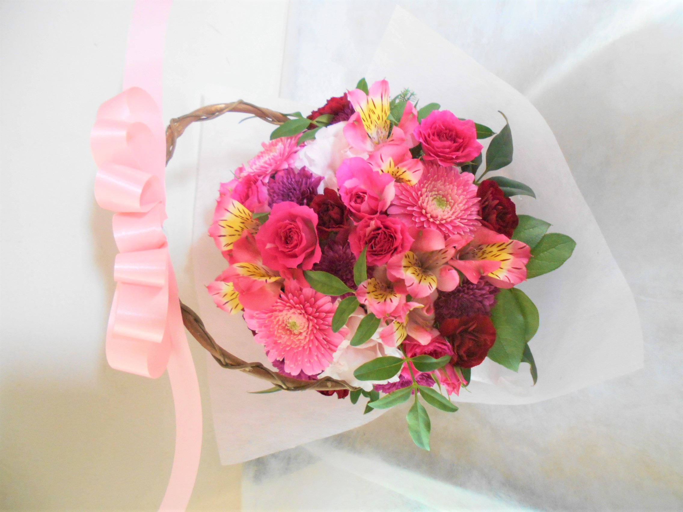 生花(バスケット)サイズ 約[H:25(取手H約27)×W:20(cm)]