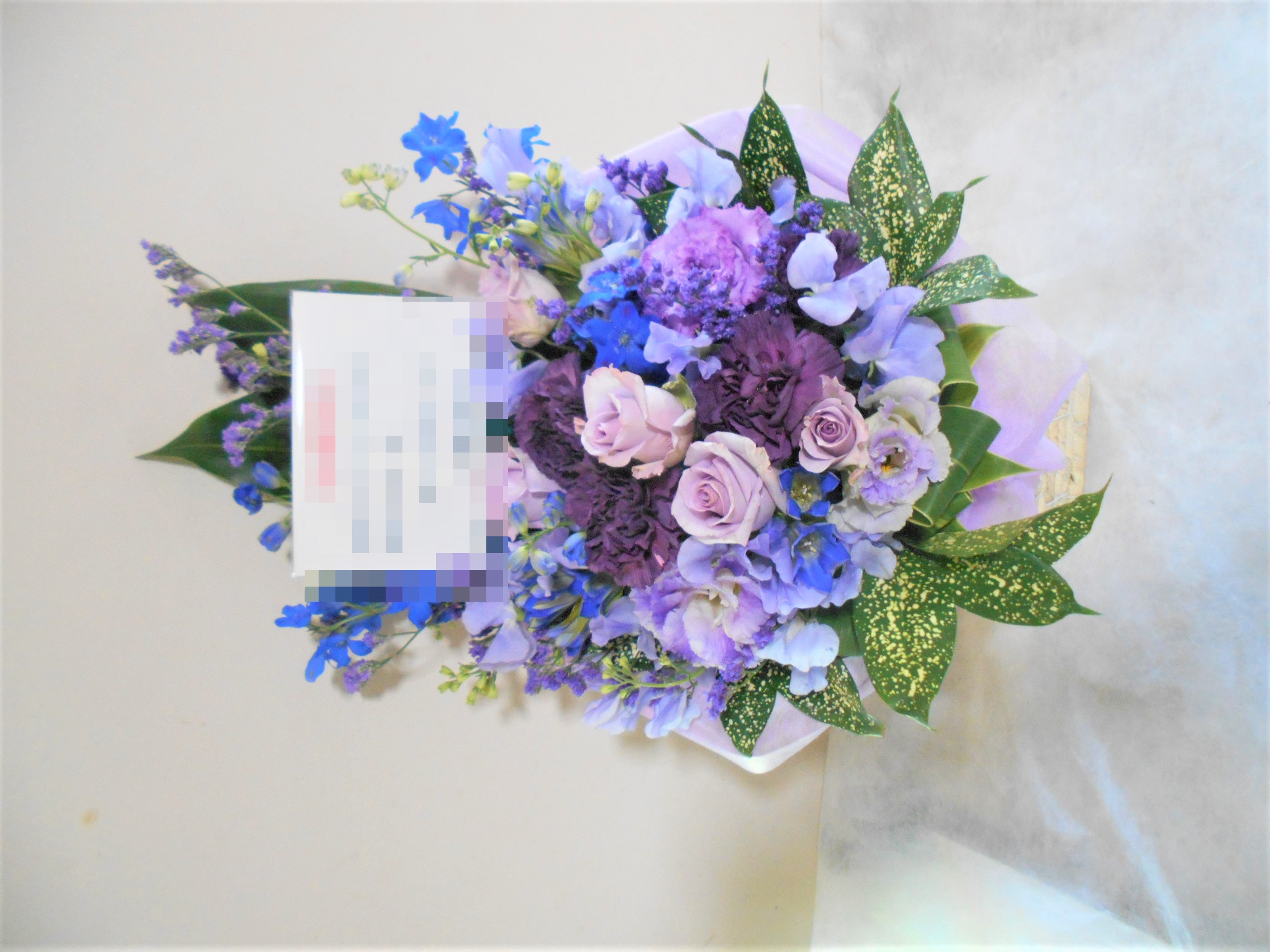 この写真は、実際にお届けさせていただいたアレンジメントです