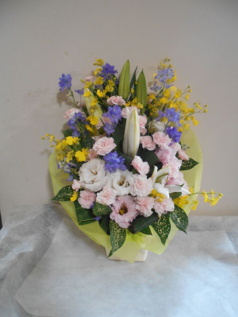 この写真は、実際にお届けさせていただいたアレンジメントです