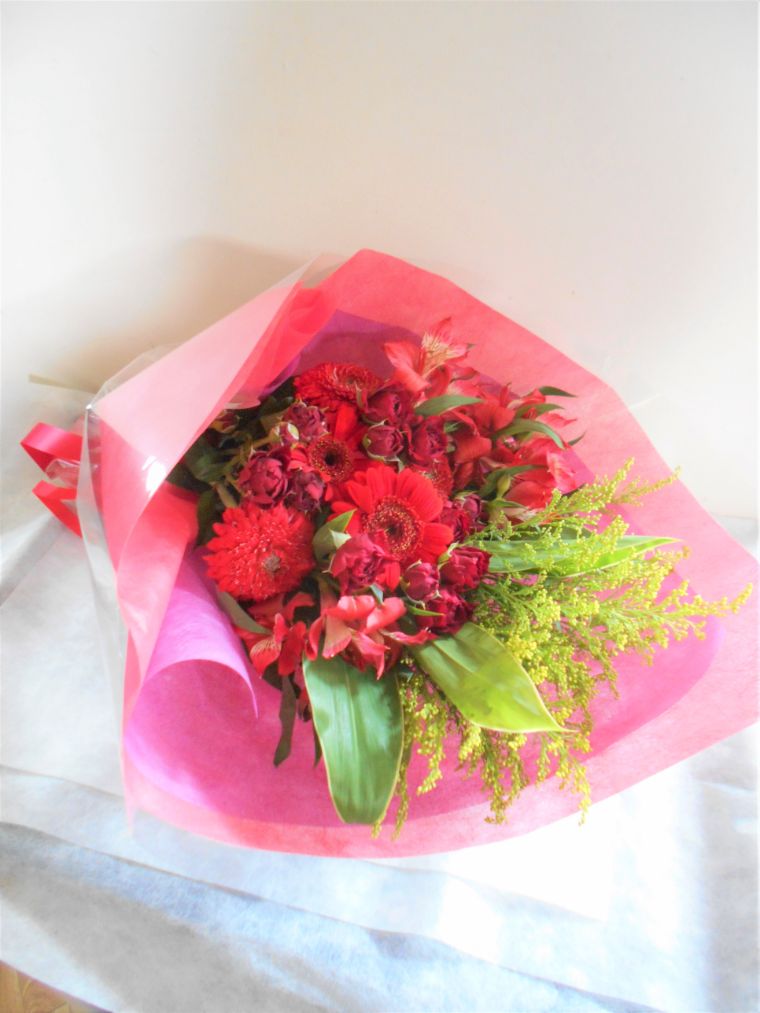 華寿・還暦(60歳)のお祝い赤色のお花メインのアレンジメント5000