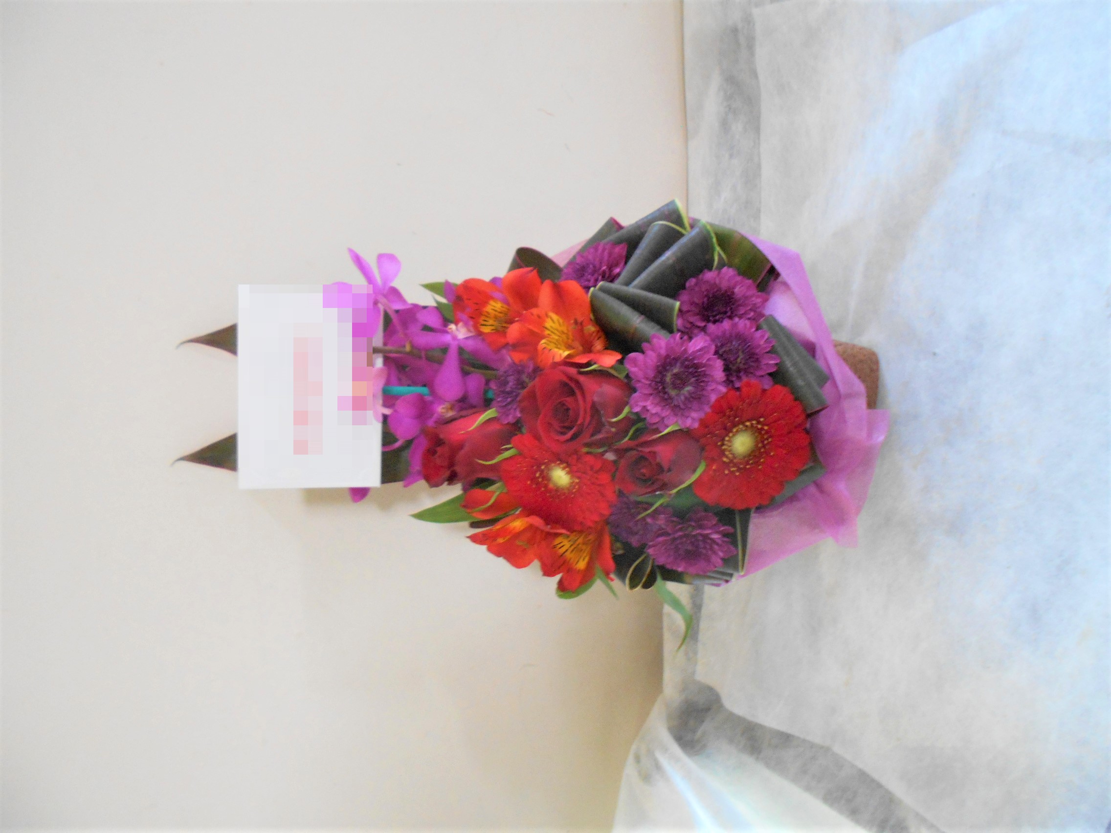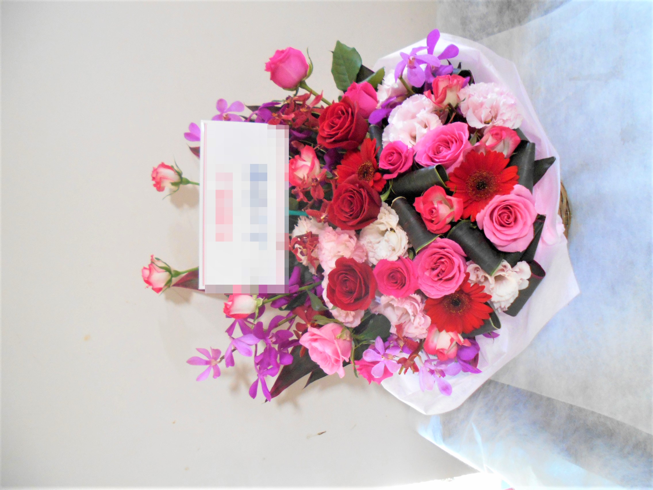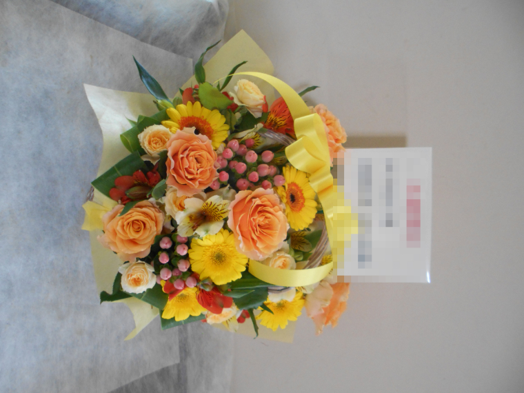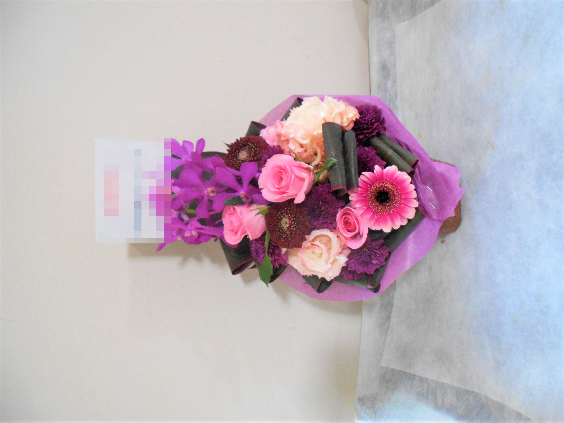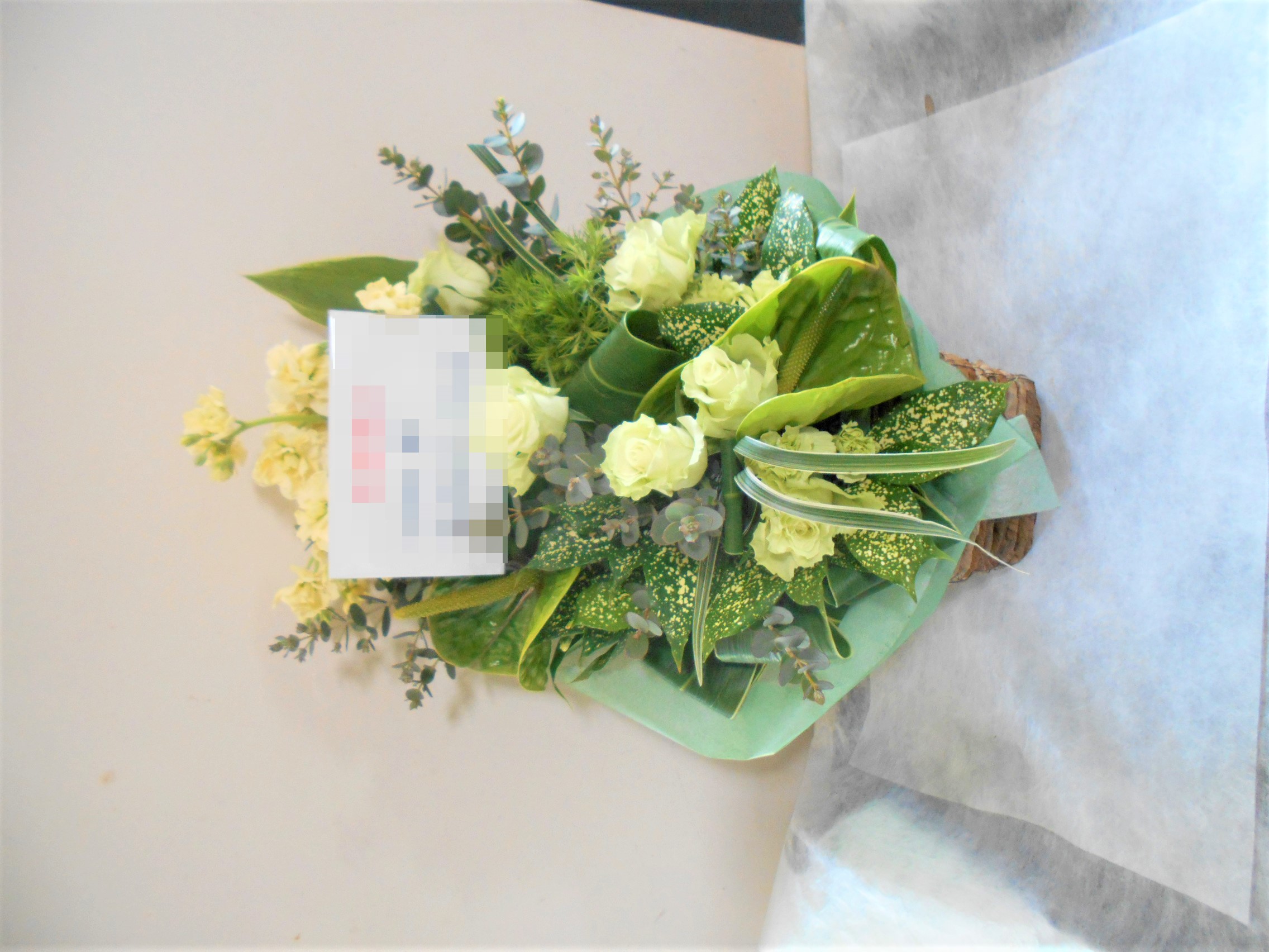 この写真は、実際にお届けさせていただいたアレンジメントです