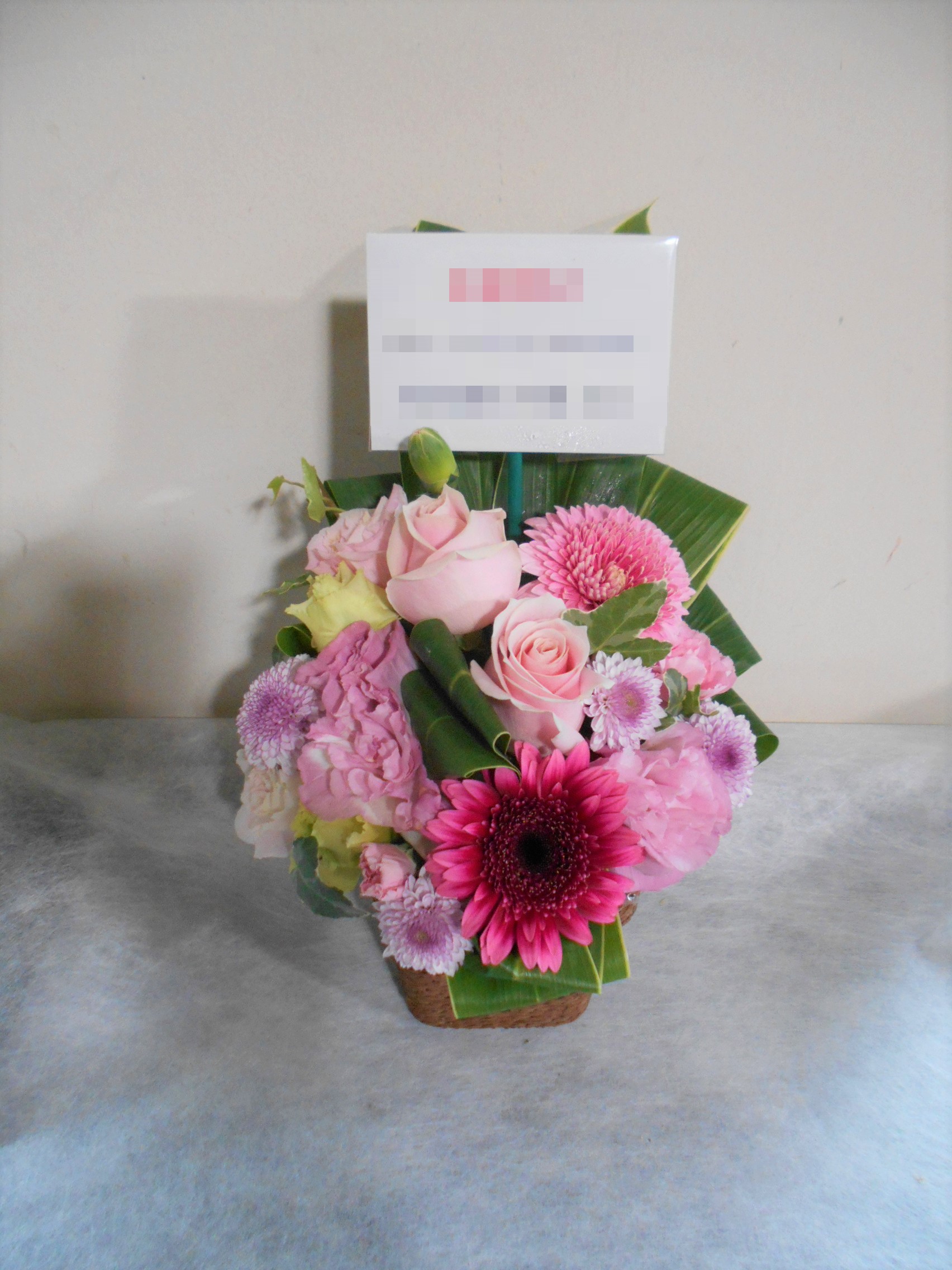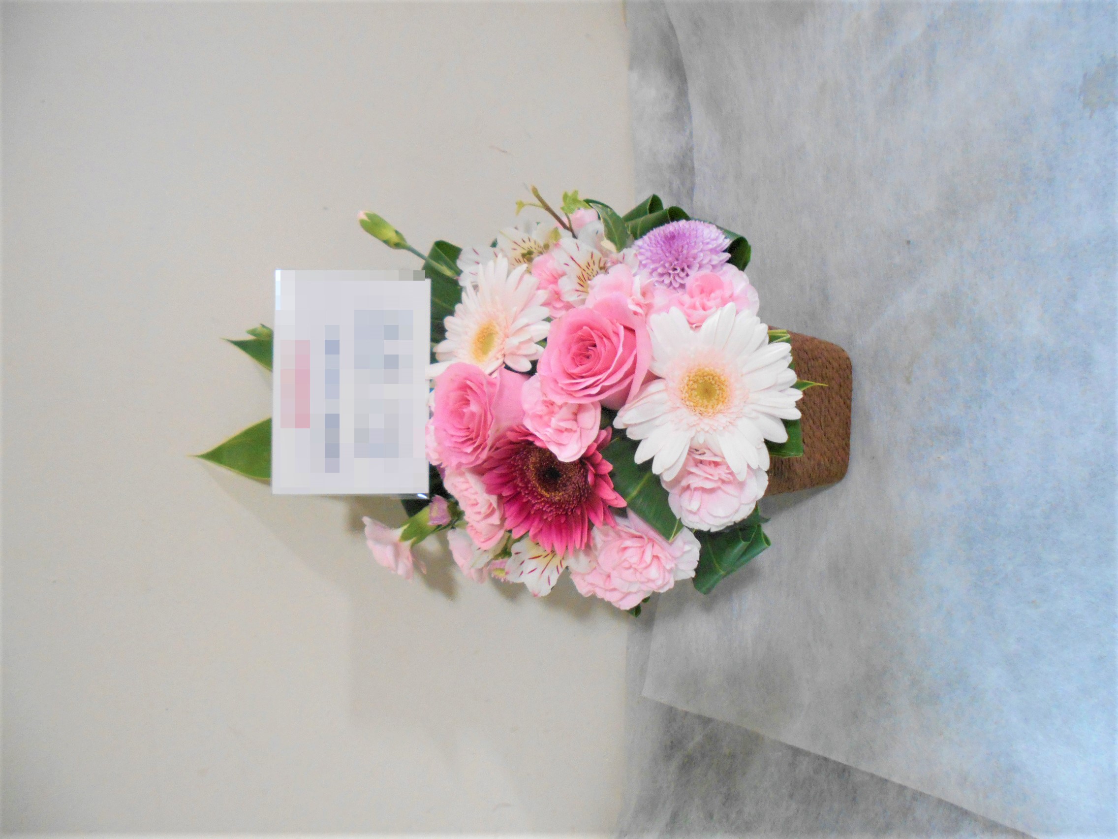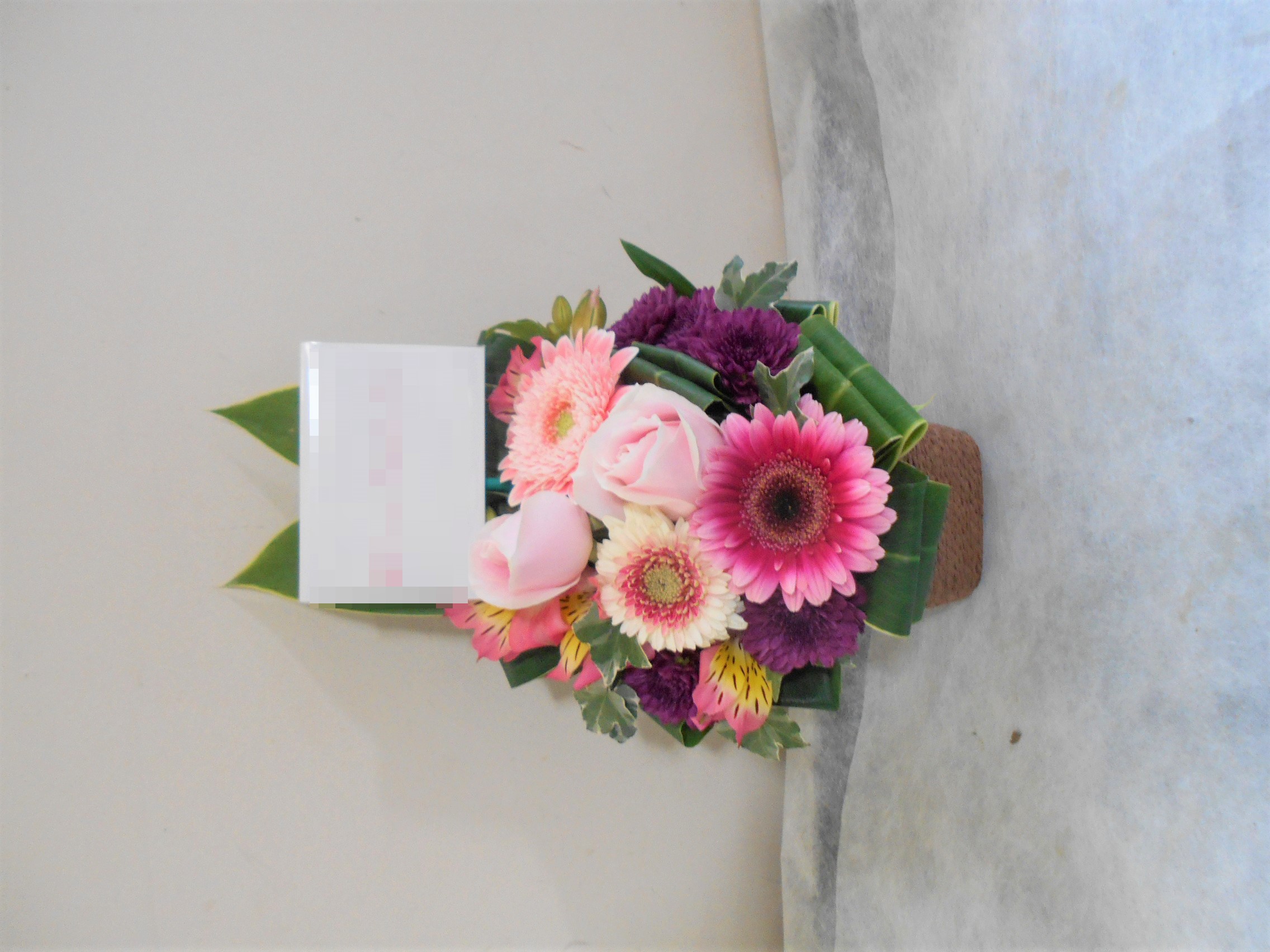 アレンジメントの実際にお届けした写真です。花秘書では発送前に写真をメールで送信致しますので安心して大切な顧客や取引様へのギフトにご利用頂けます。
