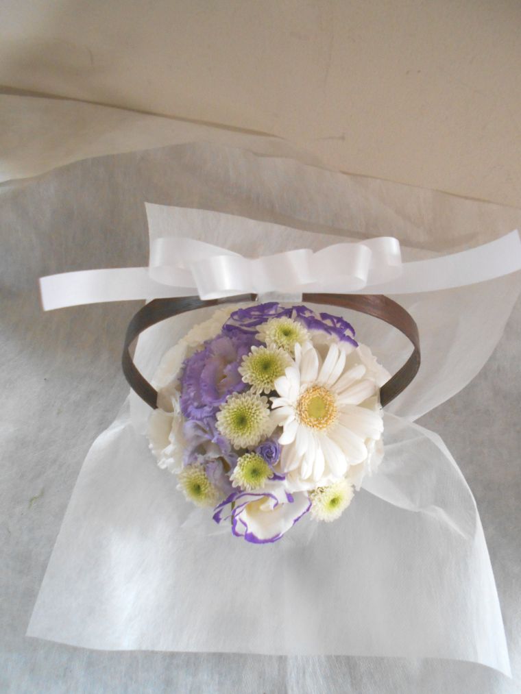 お悔やみ お供えの花 供花 (ホワイト&紫系でまとめたバスケットアレンジ)
