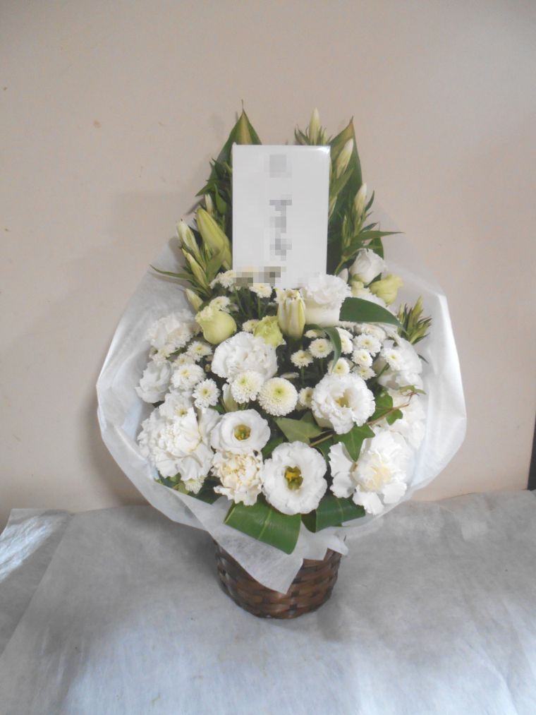 お悔やみ お供えの花 供花 (白バラと季節のお花のバスケットアレンジ)