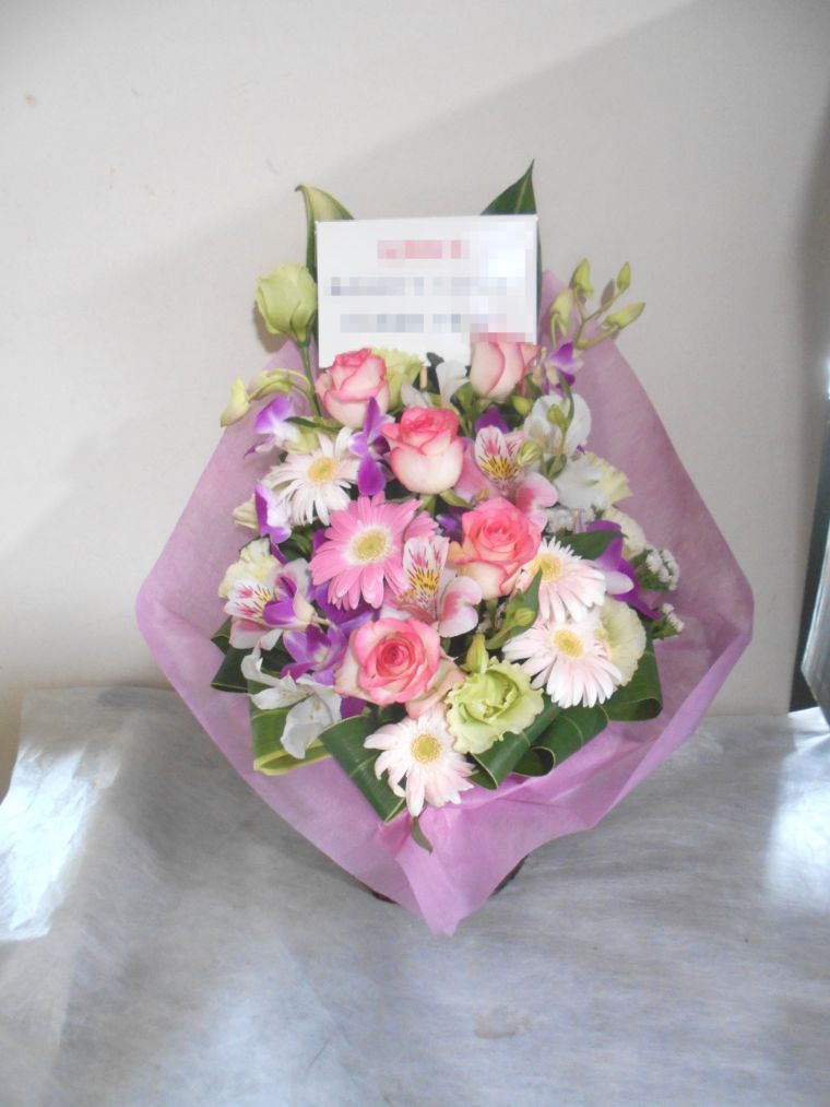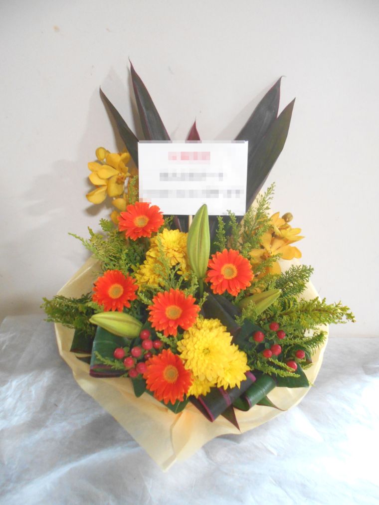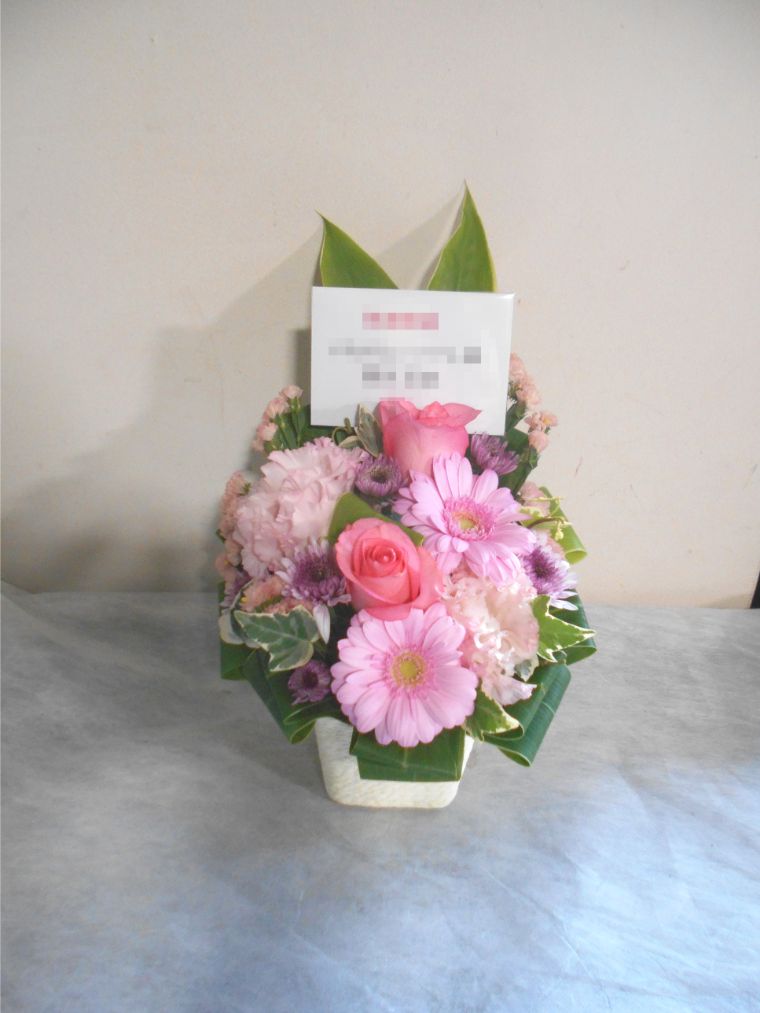 アレンジメントの実際にお届けした写真です。花秘書では発送前に写真をメールで送信致しますので安心して大切な顧客や取引様へのギフトにご利用頂けます。
