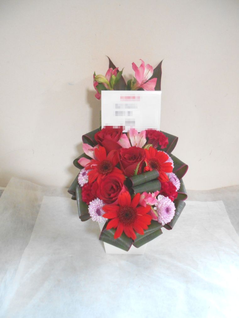 アレンジメントの実際にお届けした写真です。花秘書では発送前に写真をメールで送信致しますので安心して大切な顧客や取引様へのギフトにご利用頂けます。