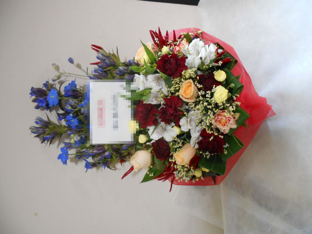 この写真は、実際にお届けさせていただいたアレンジメントです