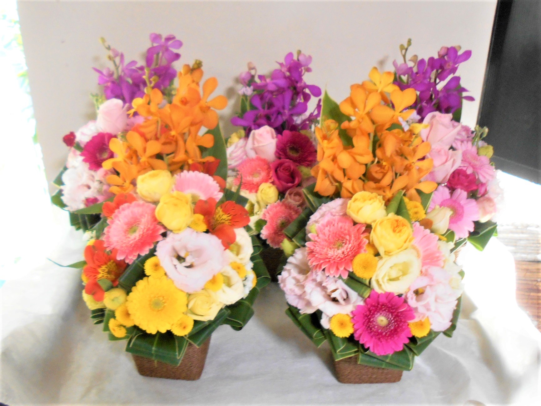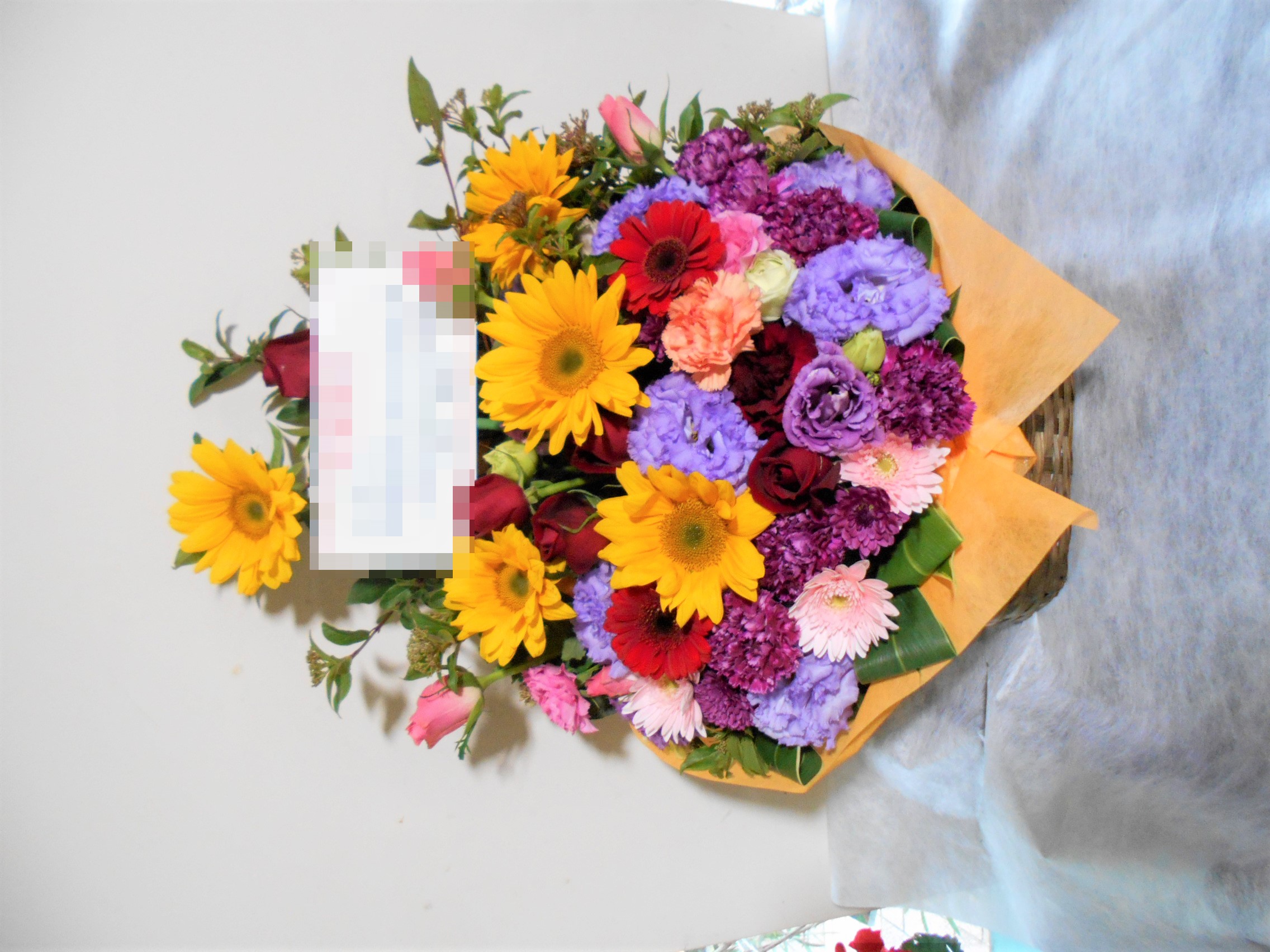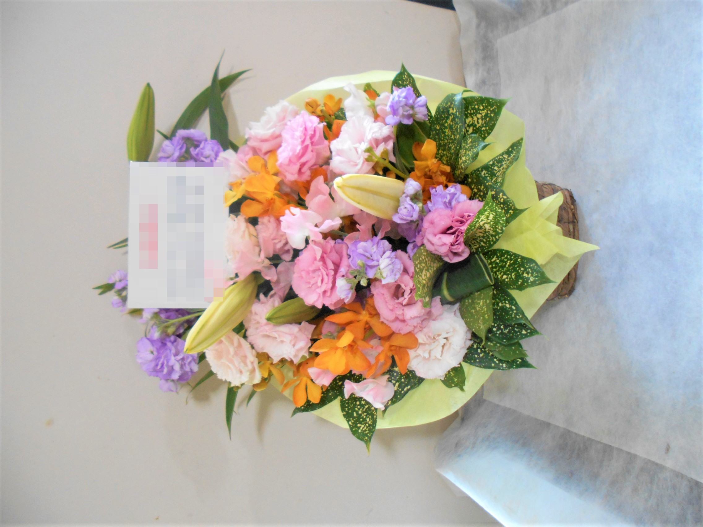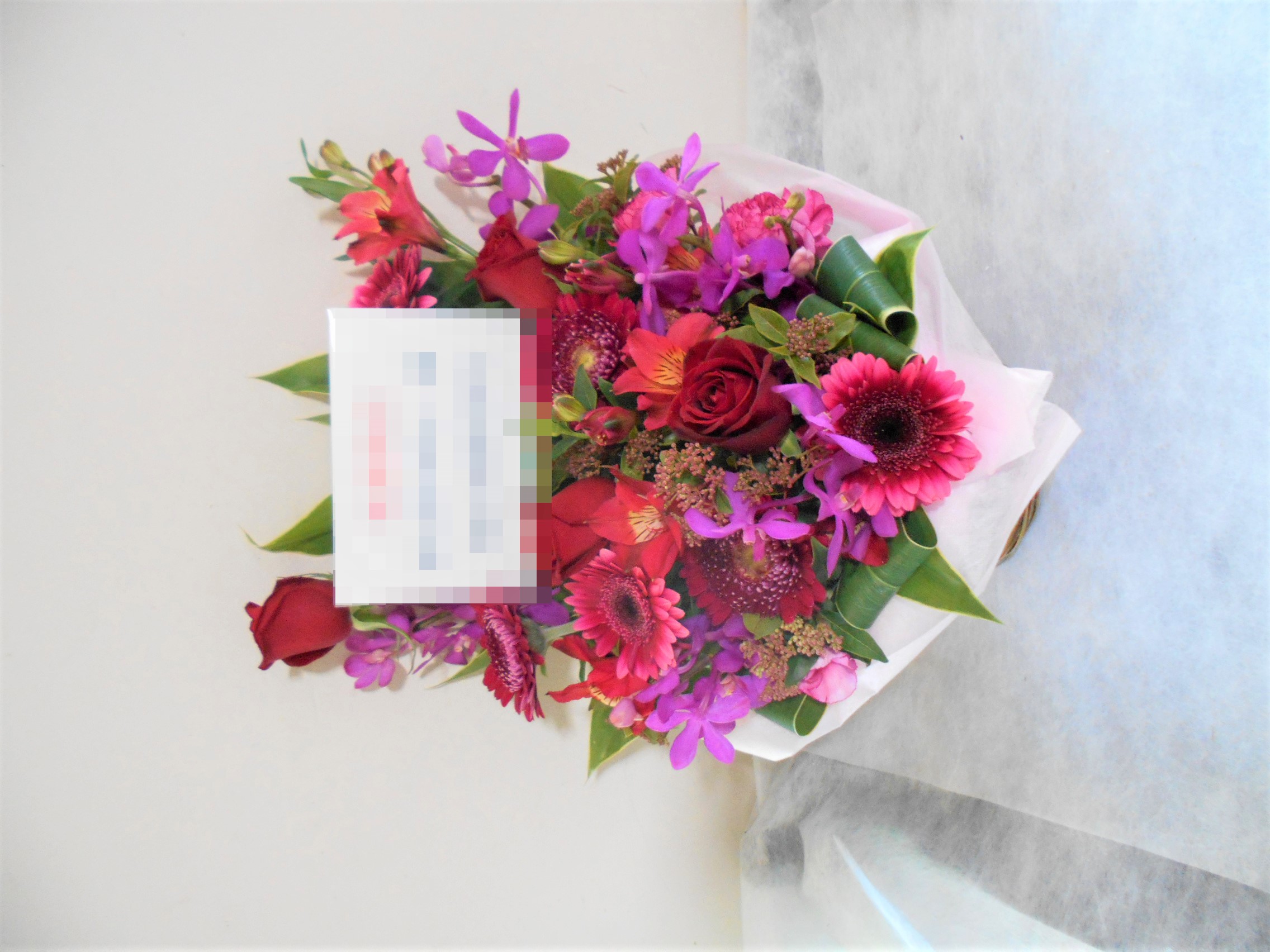 この写真は、実際にお届けさせていただいたアレンジメントです