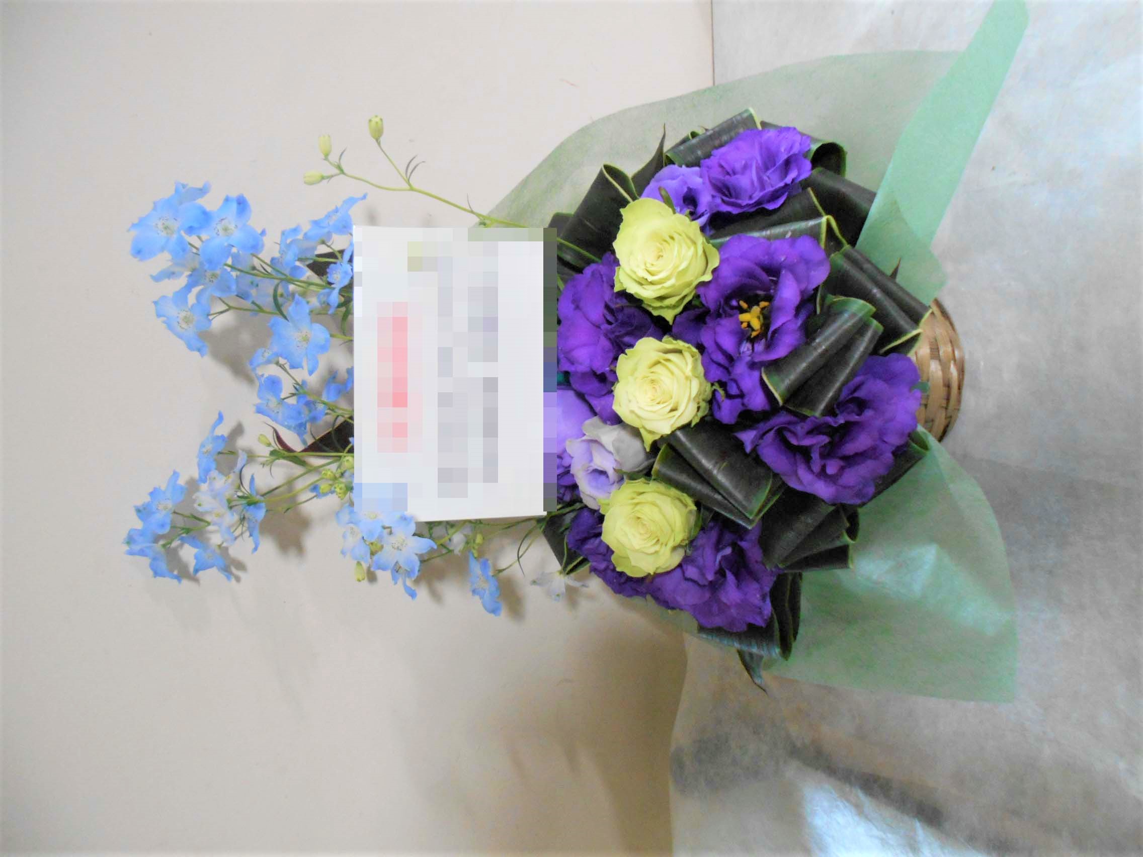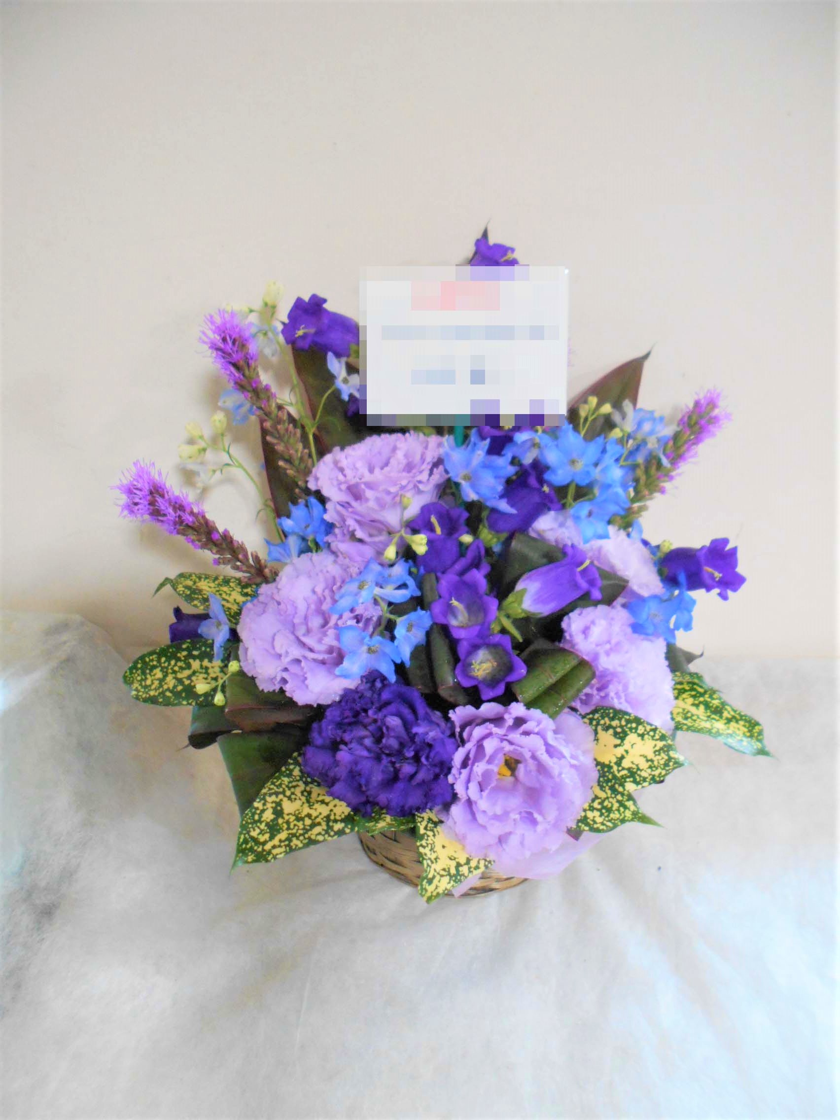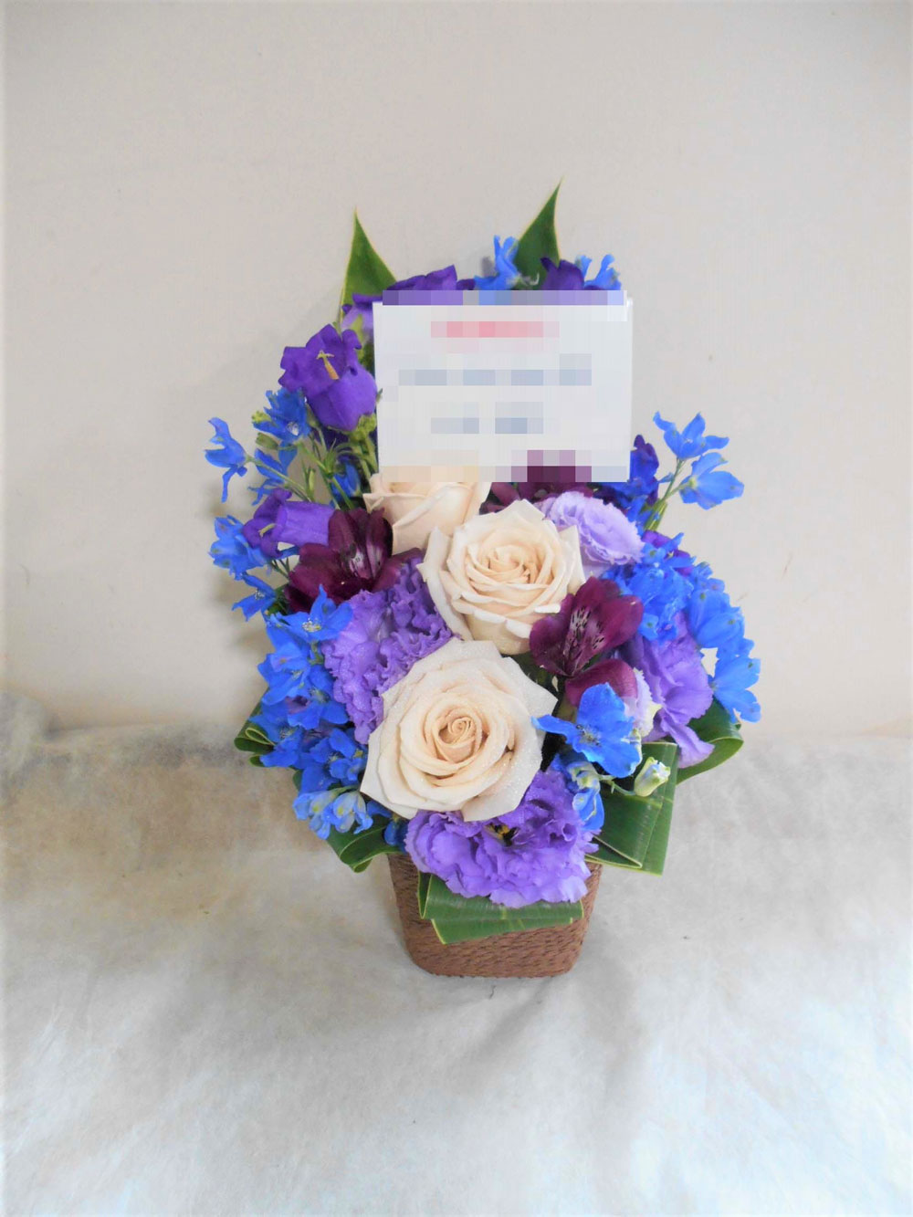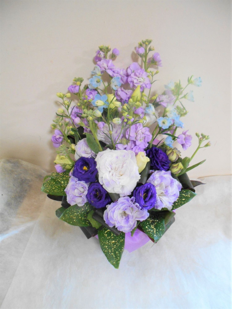 【青系】古希(70歳)のお祝い紫色のお花メインのアレンジメント10000