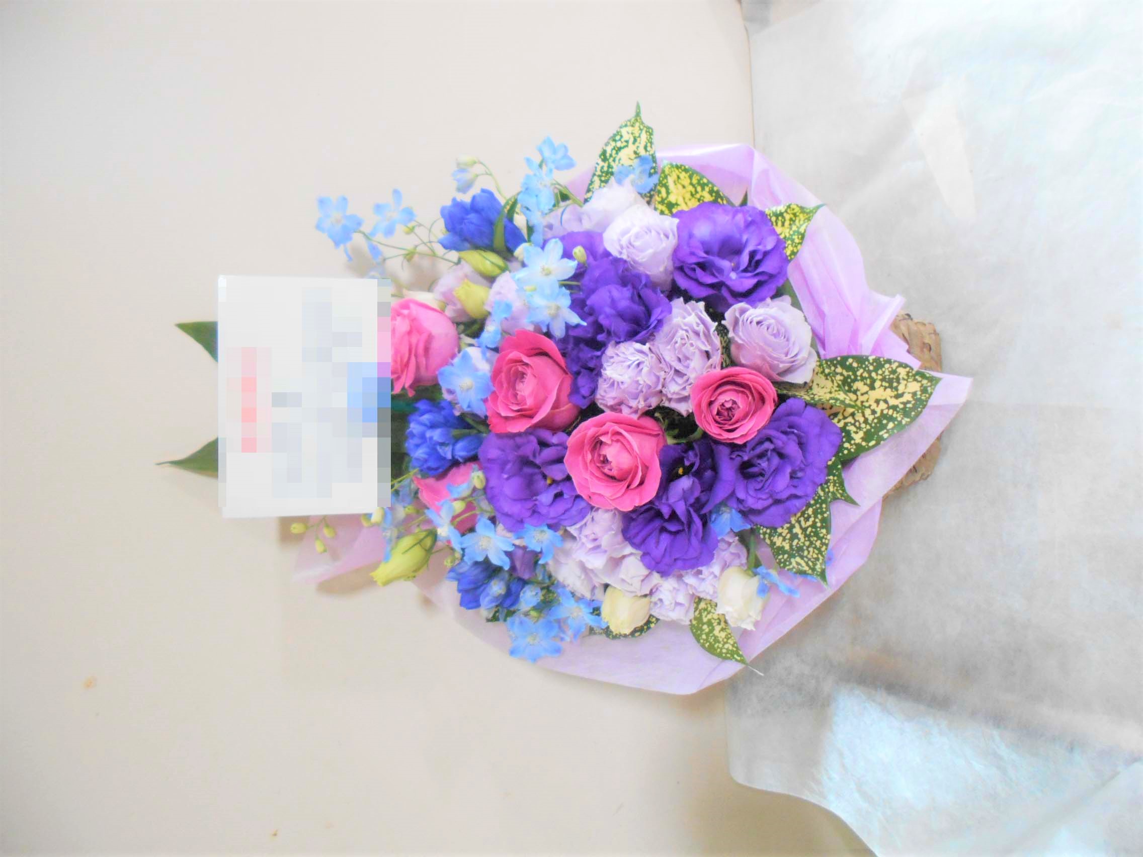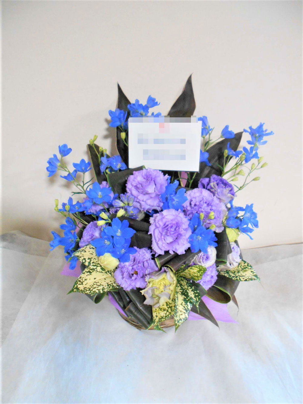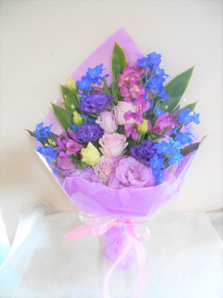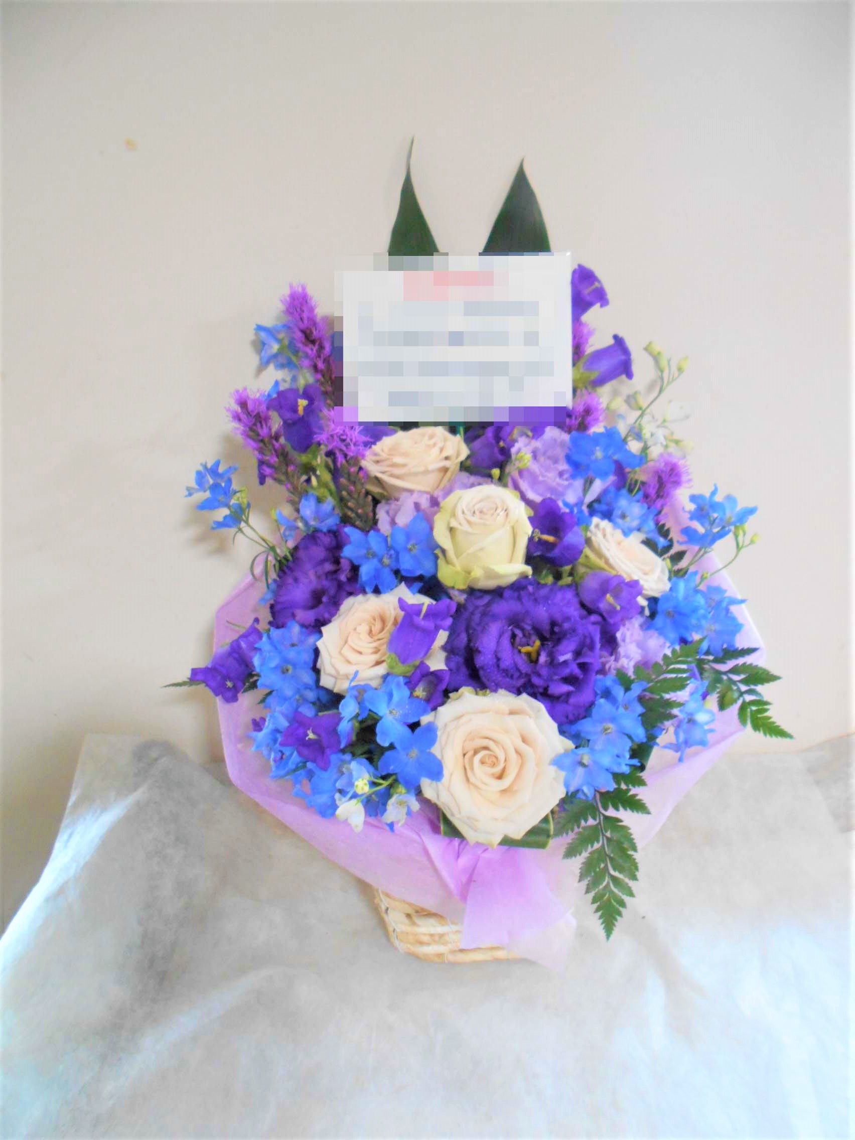 【青系】古希(70歳)のお祝い紫色のお花メインのアレンジメント10000