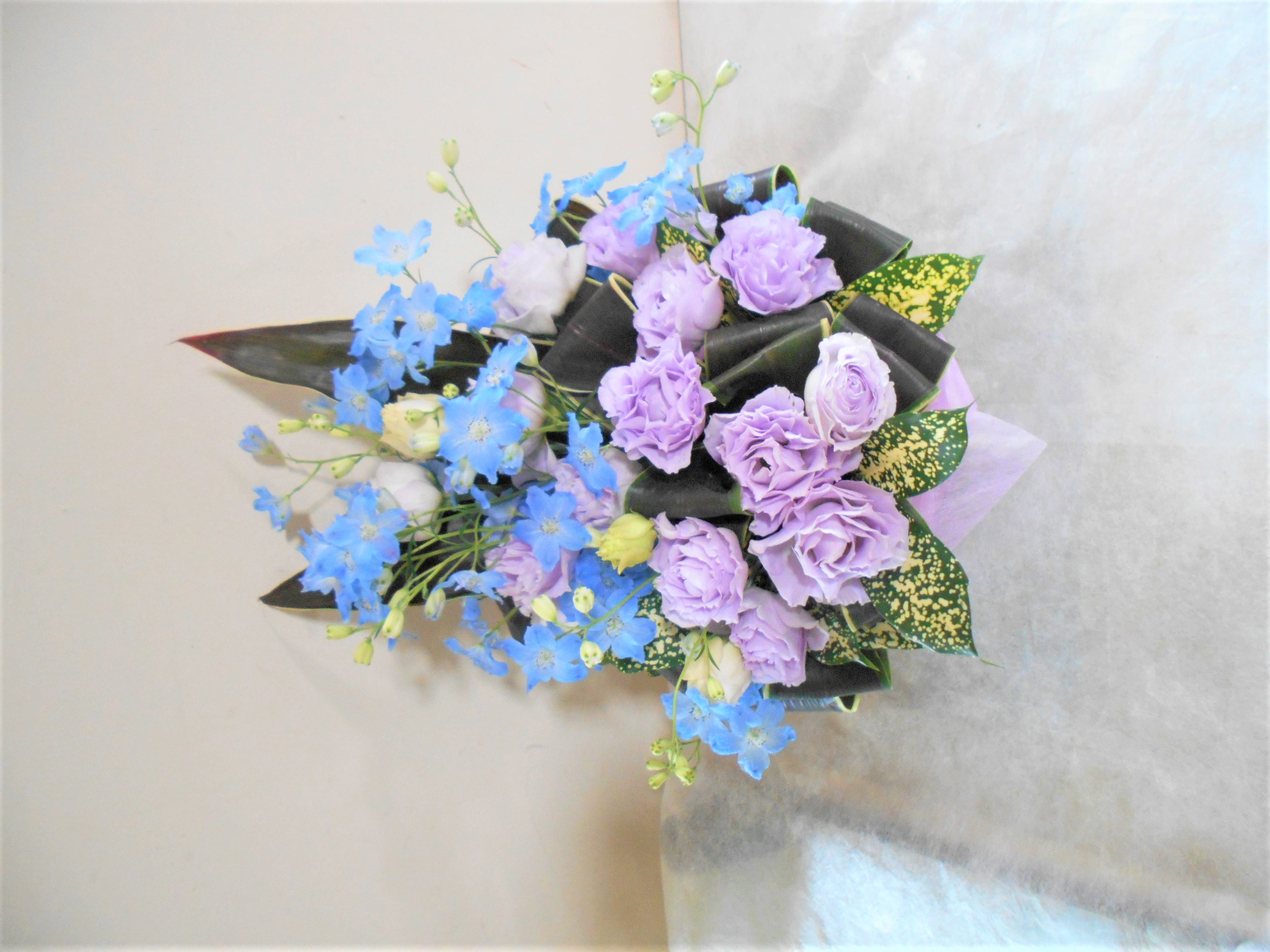 【青系】喜寿(77歳)のお祝い紫色のお花メインのアレンジメント5000