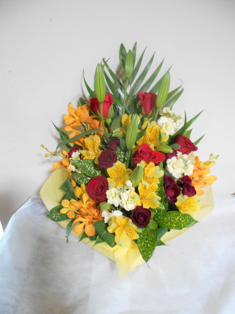 この写真は、実際にお届けさせていただいたアレンジメントです