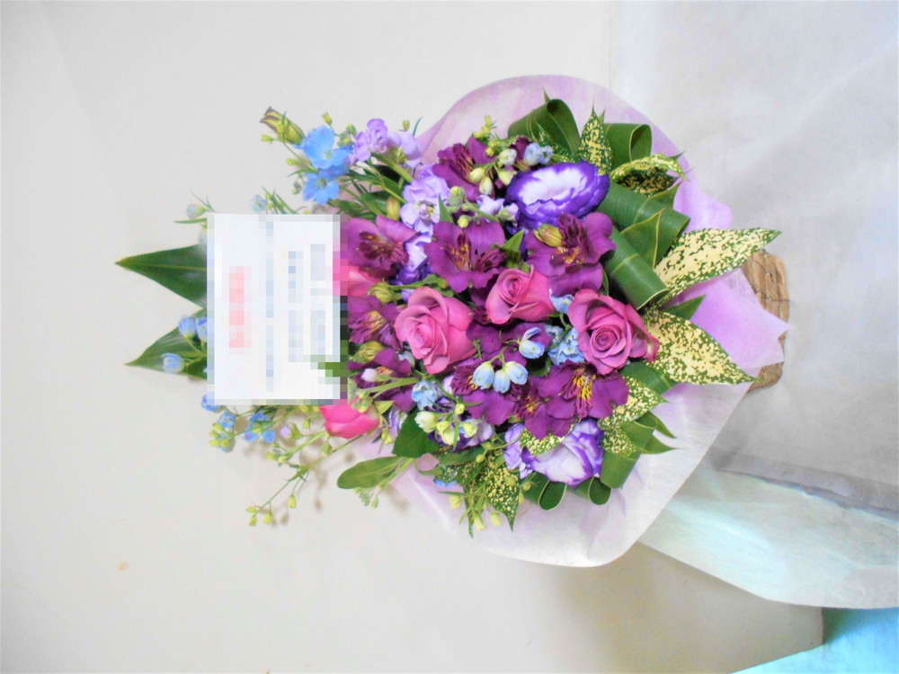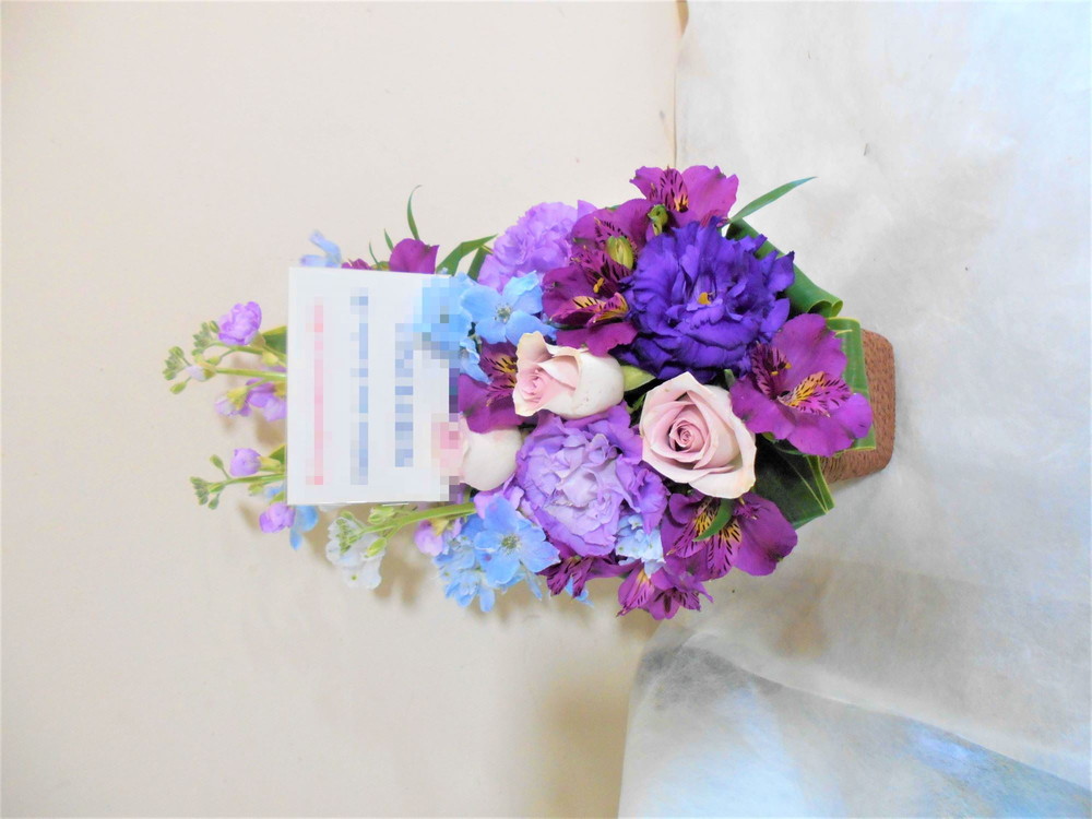 卒寿(90歳)のお祝い紫色のお花メインのアレンジメント10000