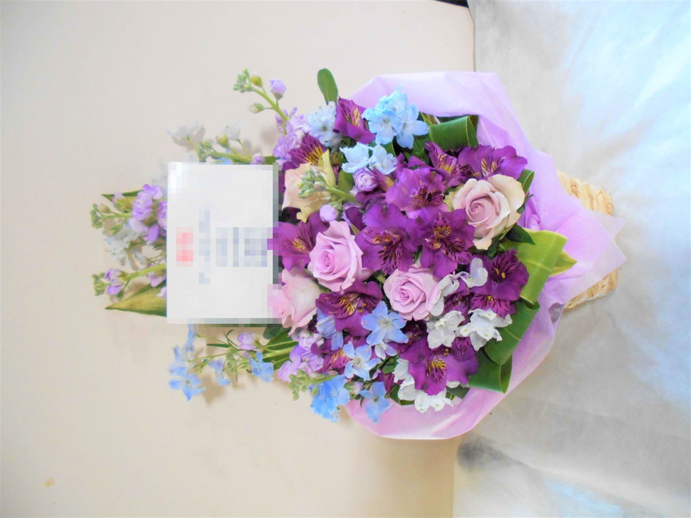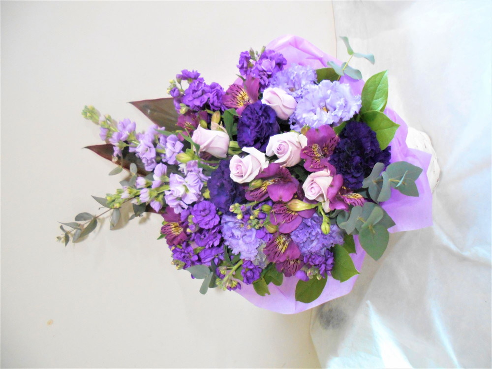 古希(70歳)のお祝い紫色のお花メインのアレンジメント10000