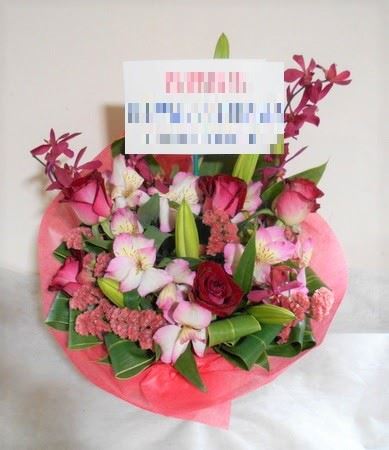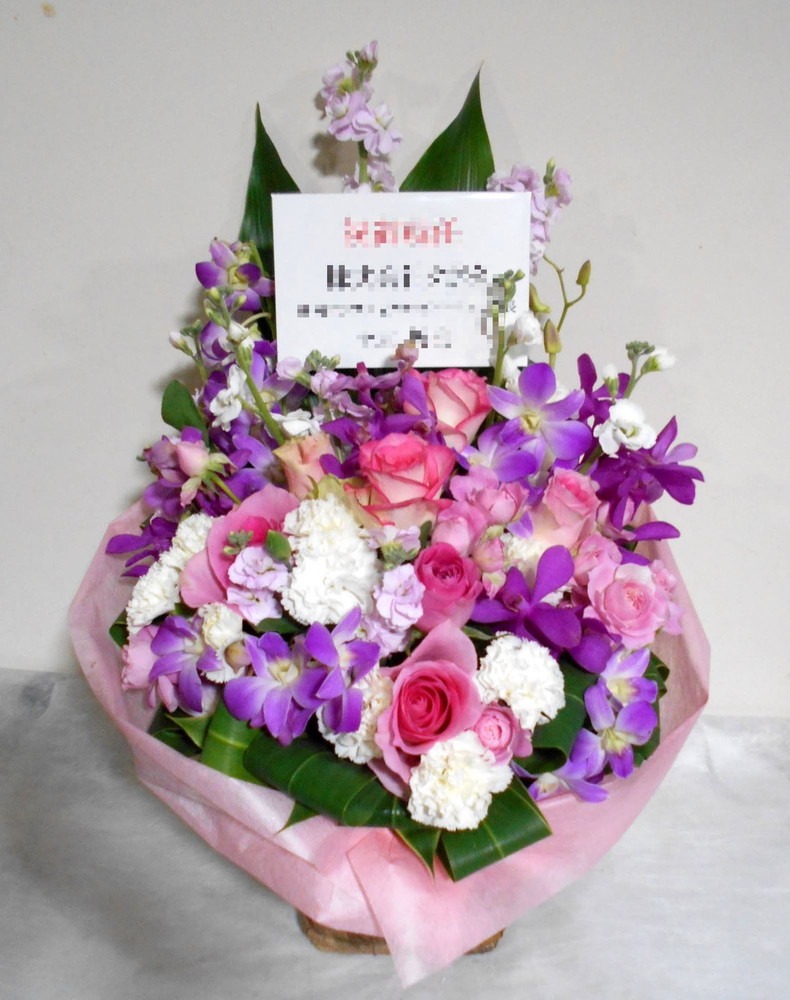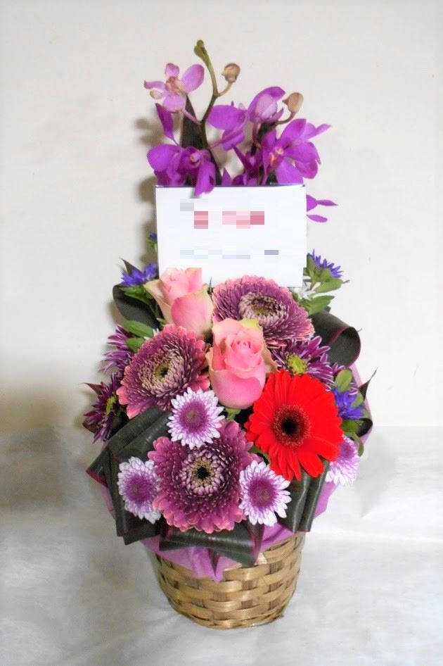 この写真は、実際にお届けさせていただいたアレンジメントです