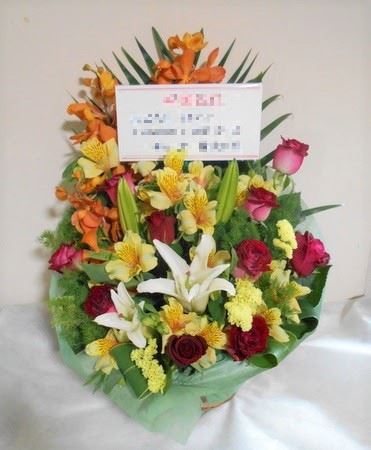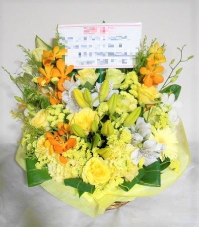 アレンジメントの実際にお届けした写真です。花秘書では発送前に写真をメールで送信致しますので安心して大切な顧客や取引様へのギフトにご利用頂けます。