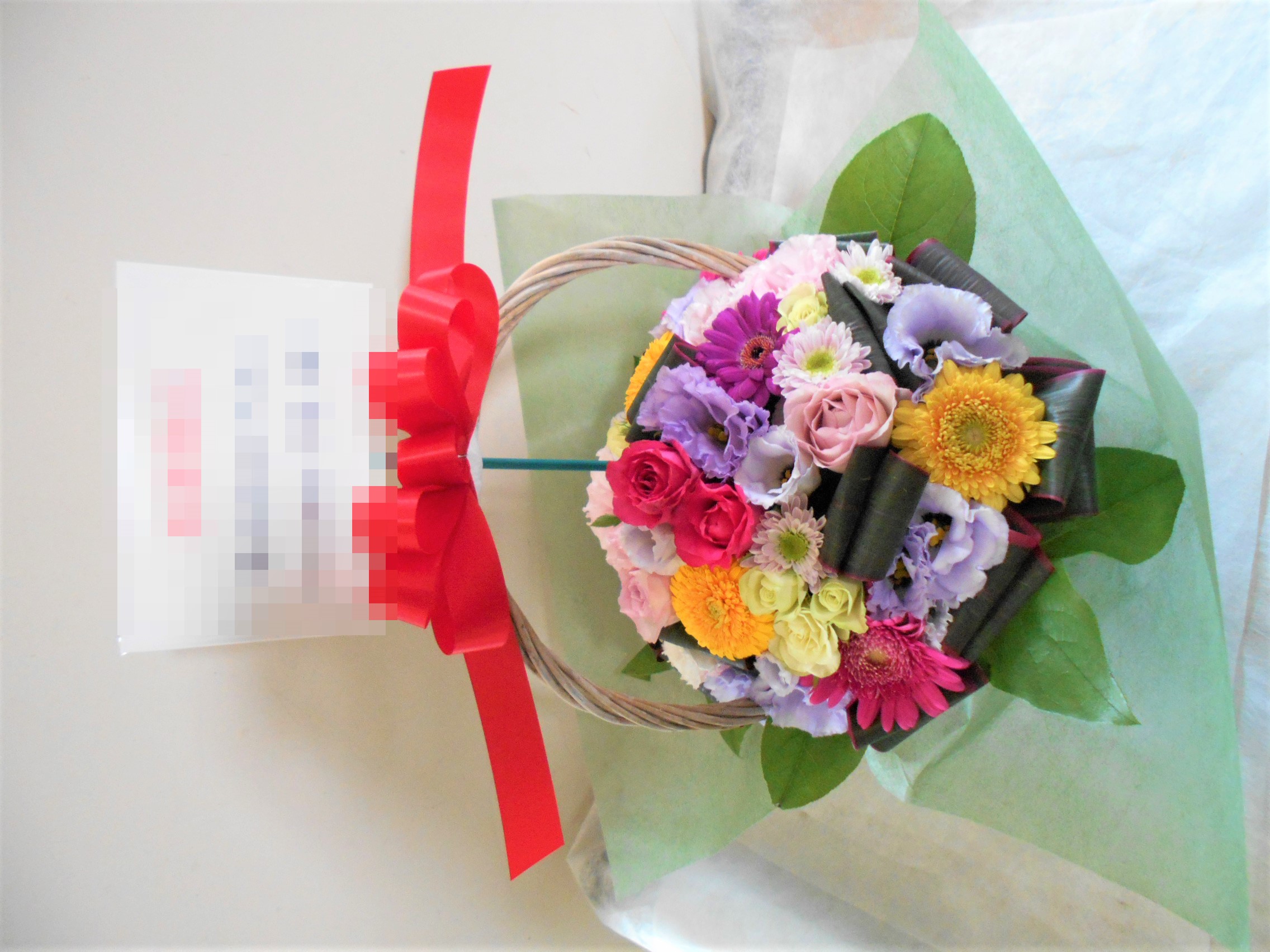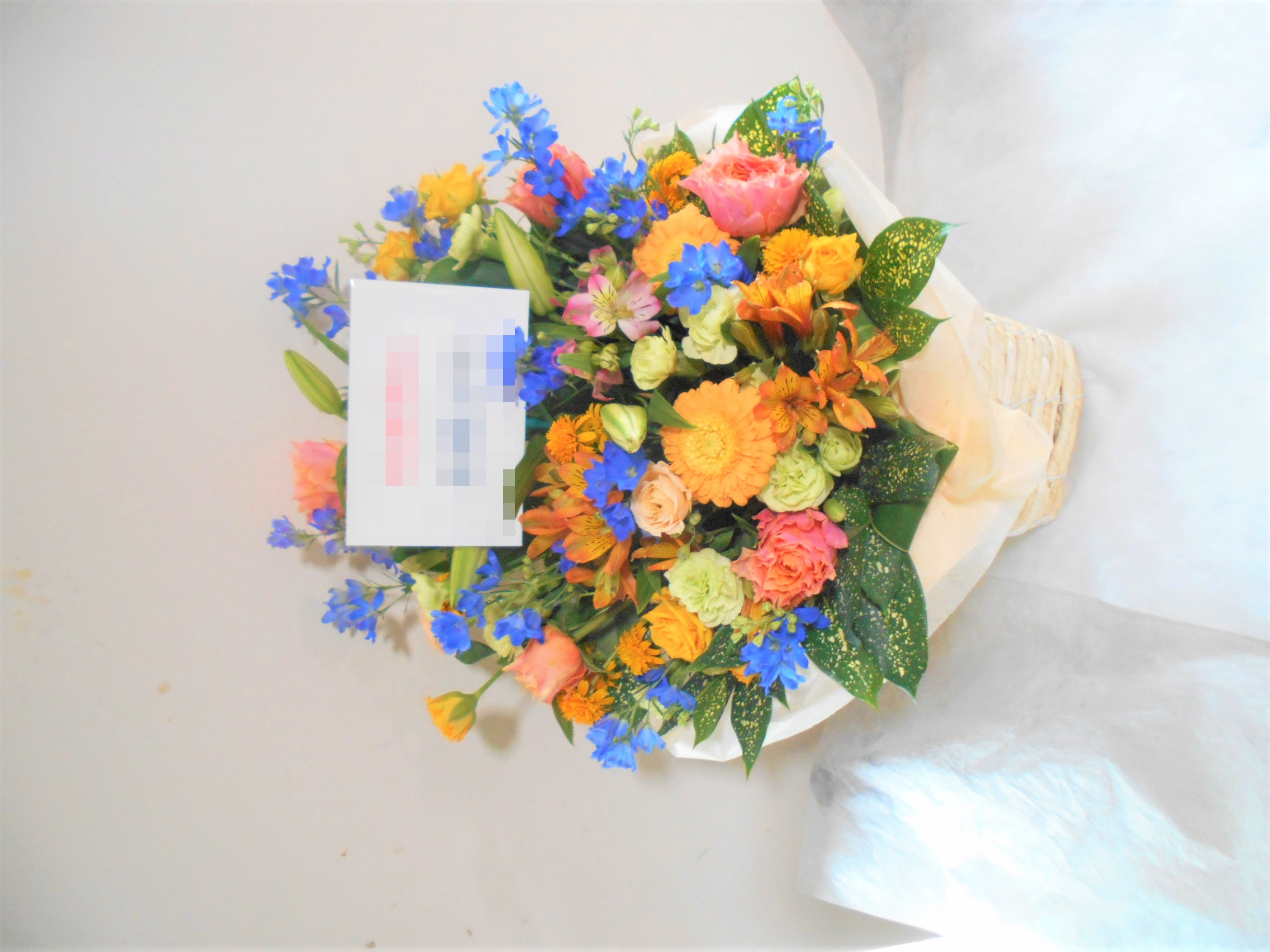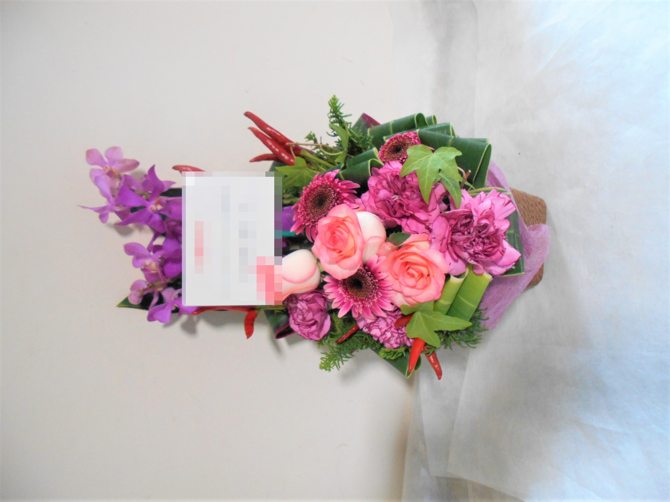 この写真は、実際にお届けさせていただいたアレンジメントです