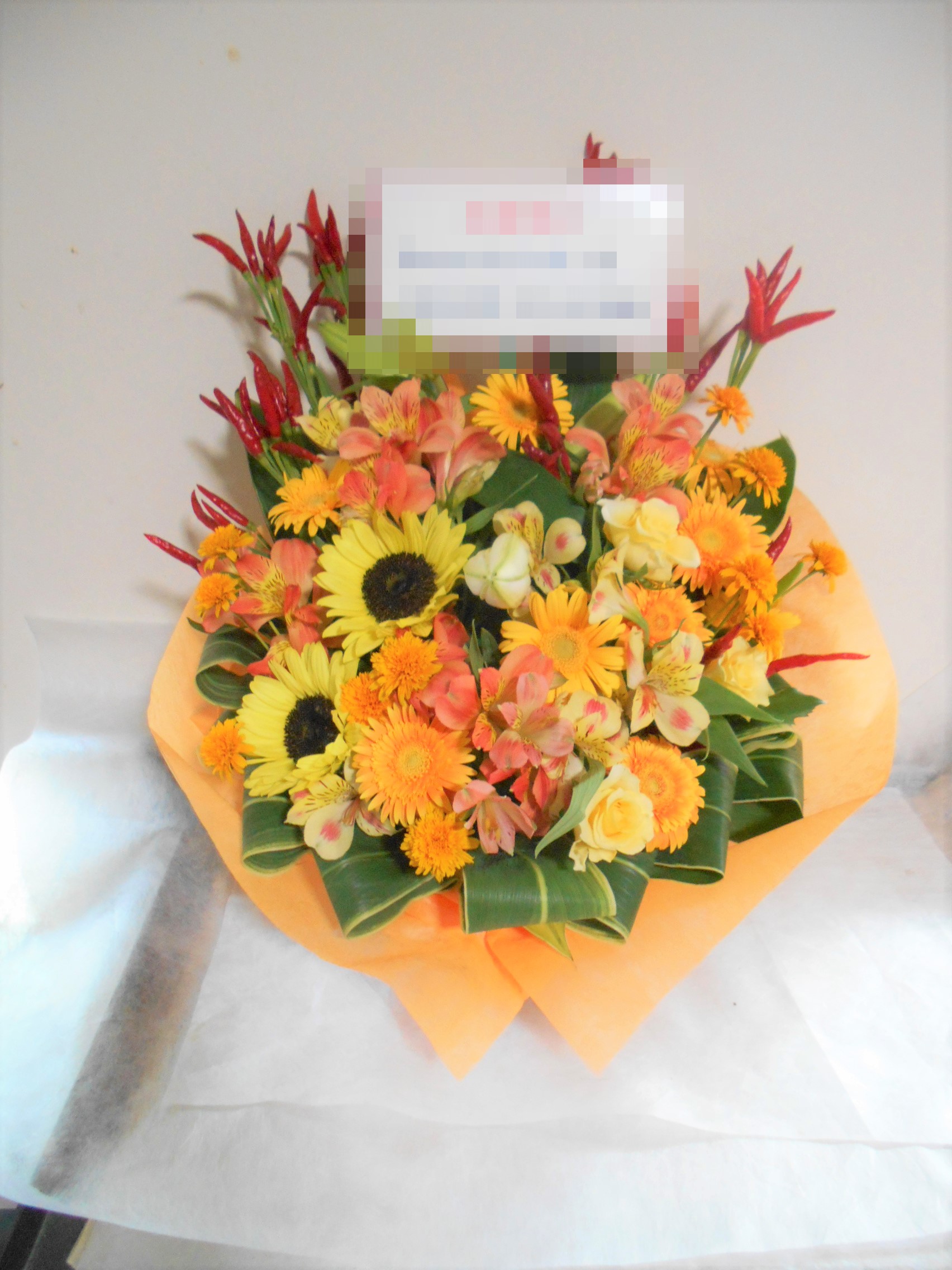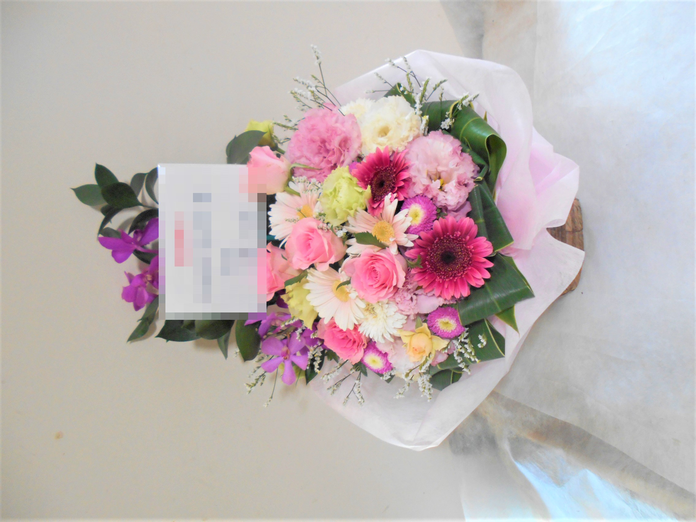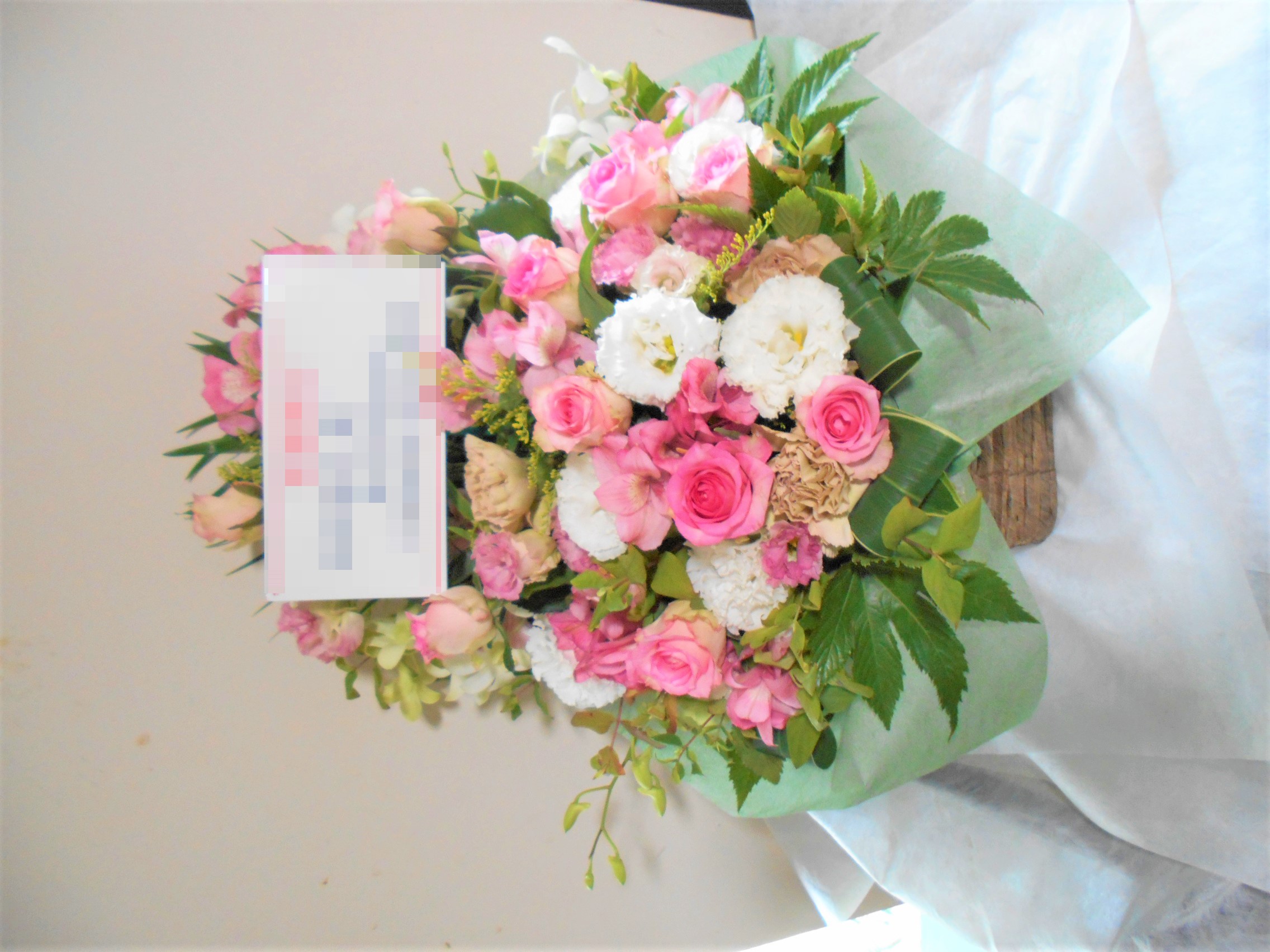 この写真は、実際にお届けさせていただいたアレンジメントです