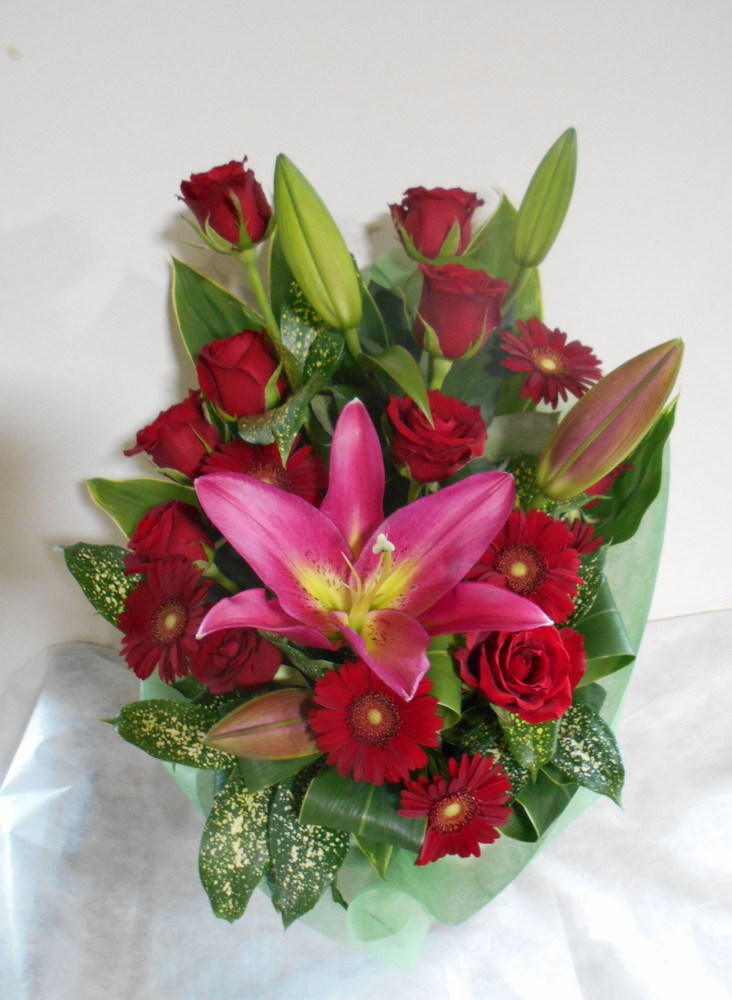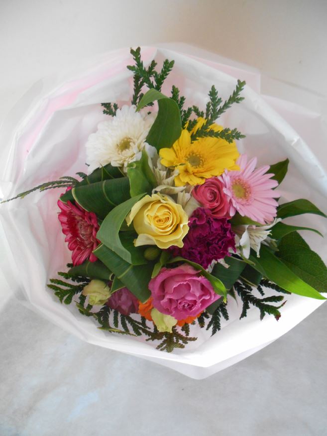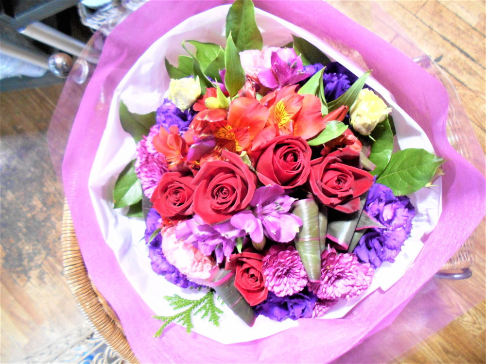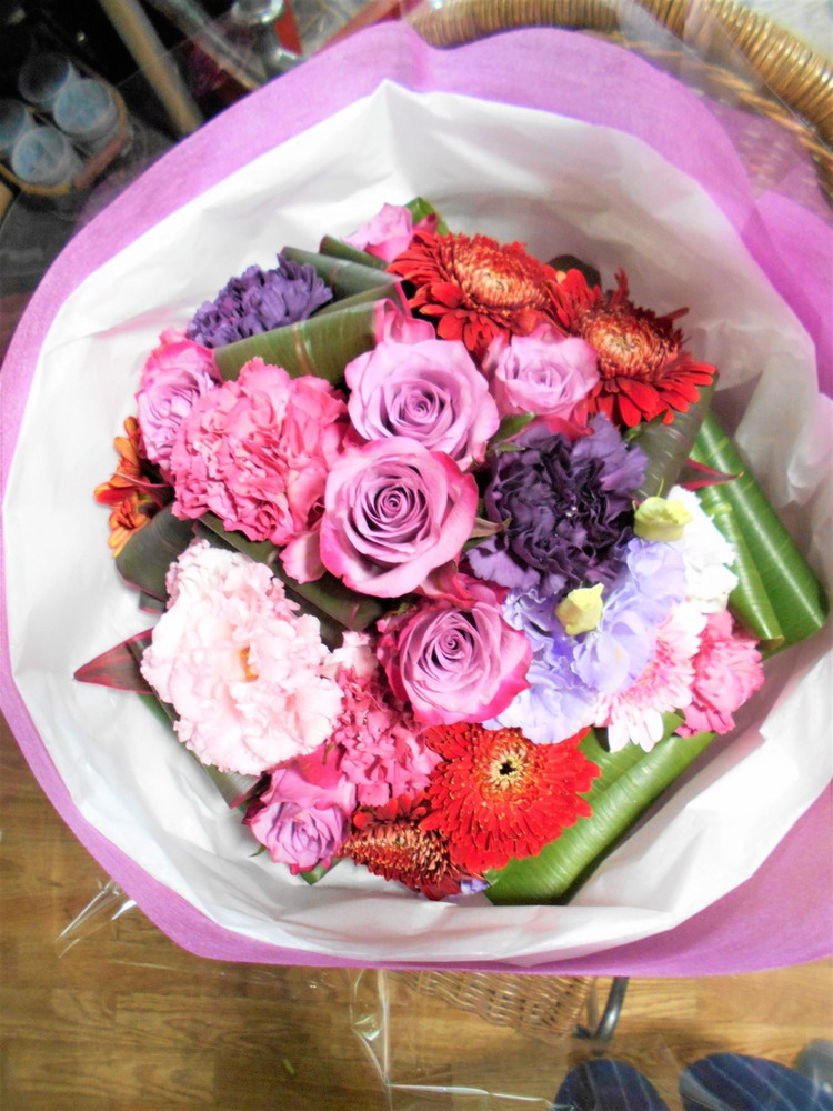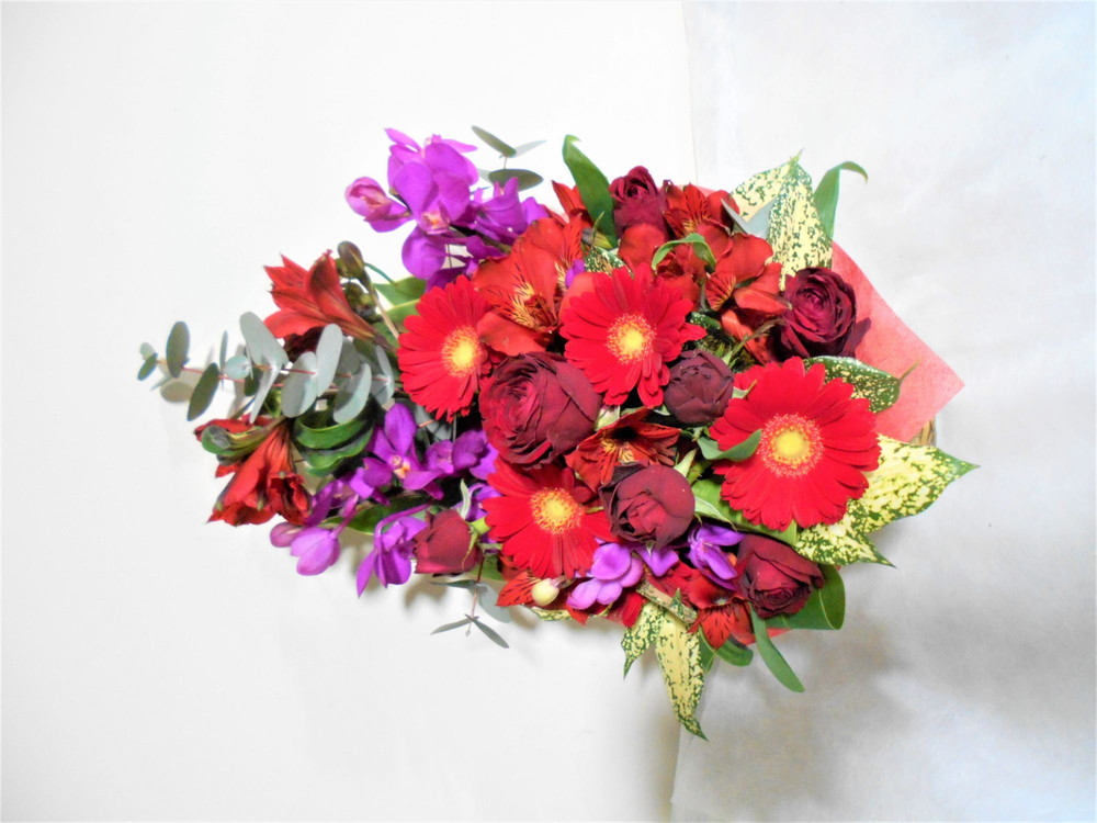 この写真は、実際にお届けさせていただいたアレンジメントです