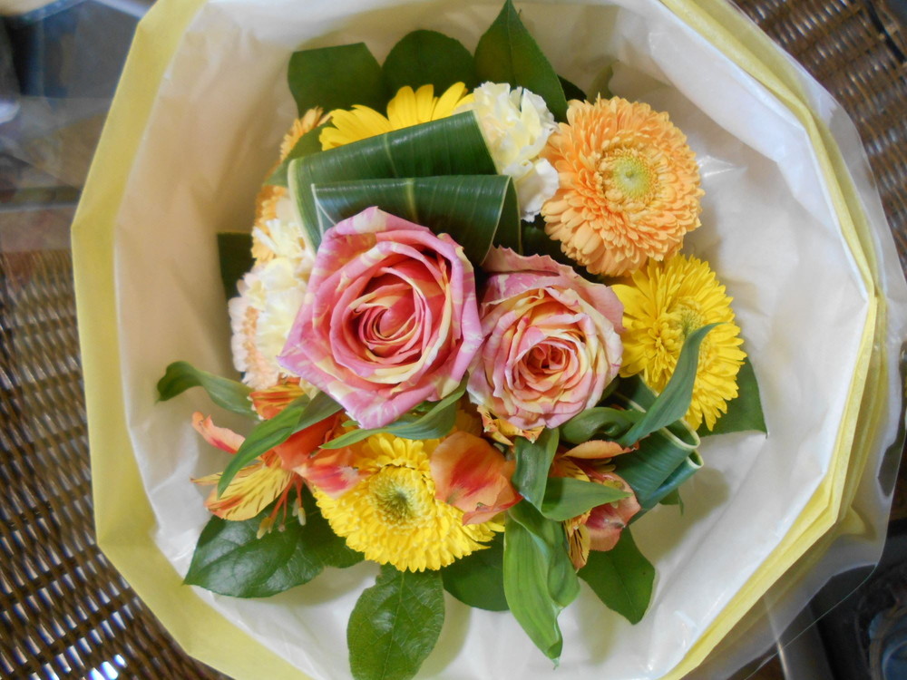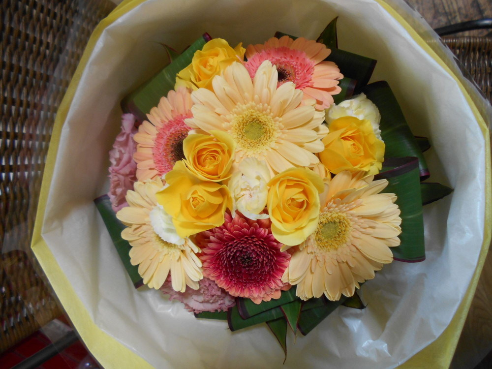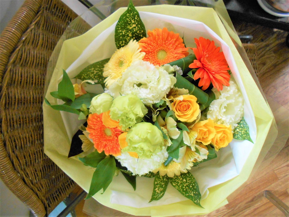 鮮やかな黄色オレンジ系のブーケ(花束)