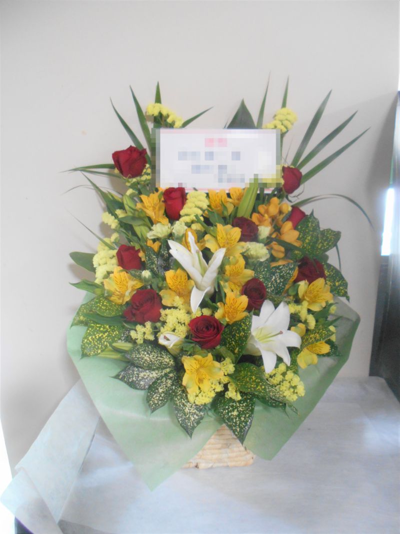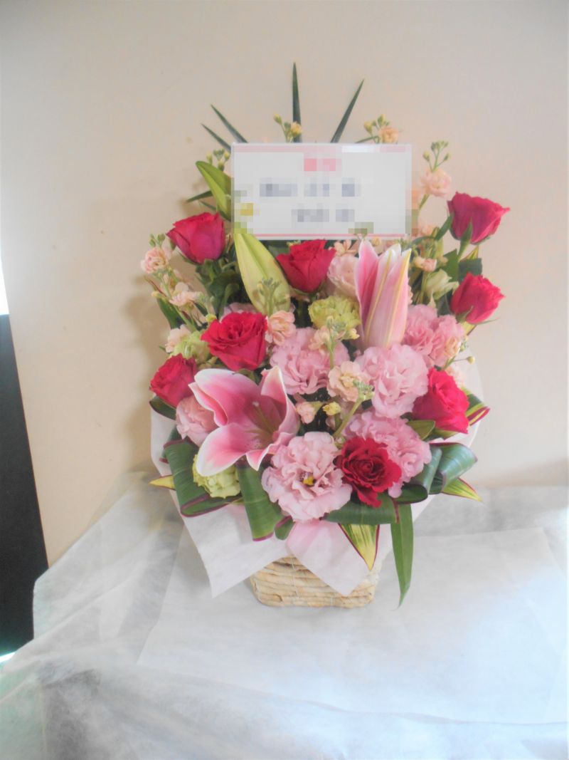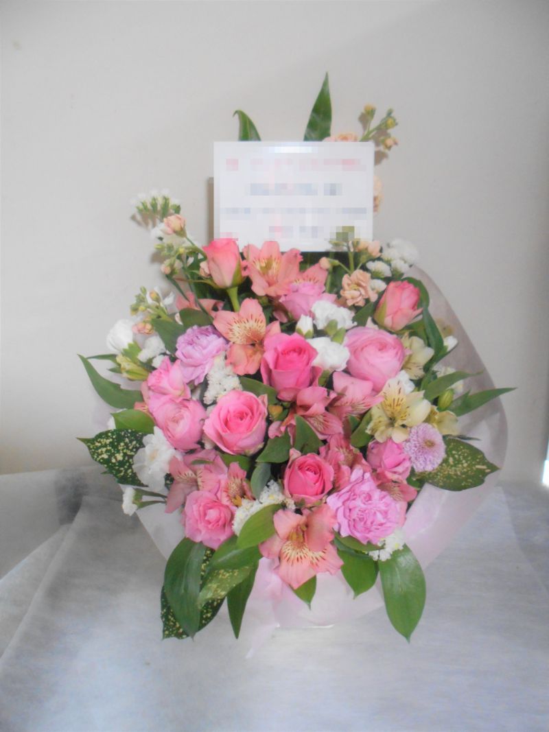 アレンジメントの実際にお届けした写真です。花秘書では発送前に写真をメールで送信致しますので安心して大切な顧客や取引様へのギフトにご利用頂けます。