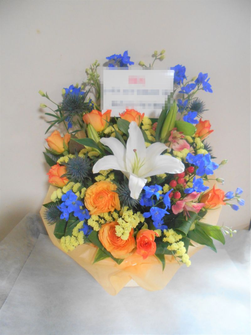 この写真は、実際にお届けさせていただいたアレンジメントです