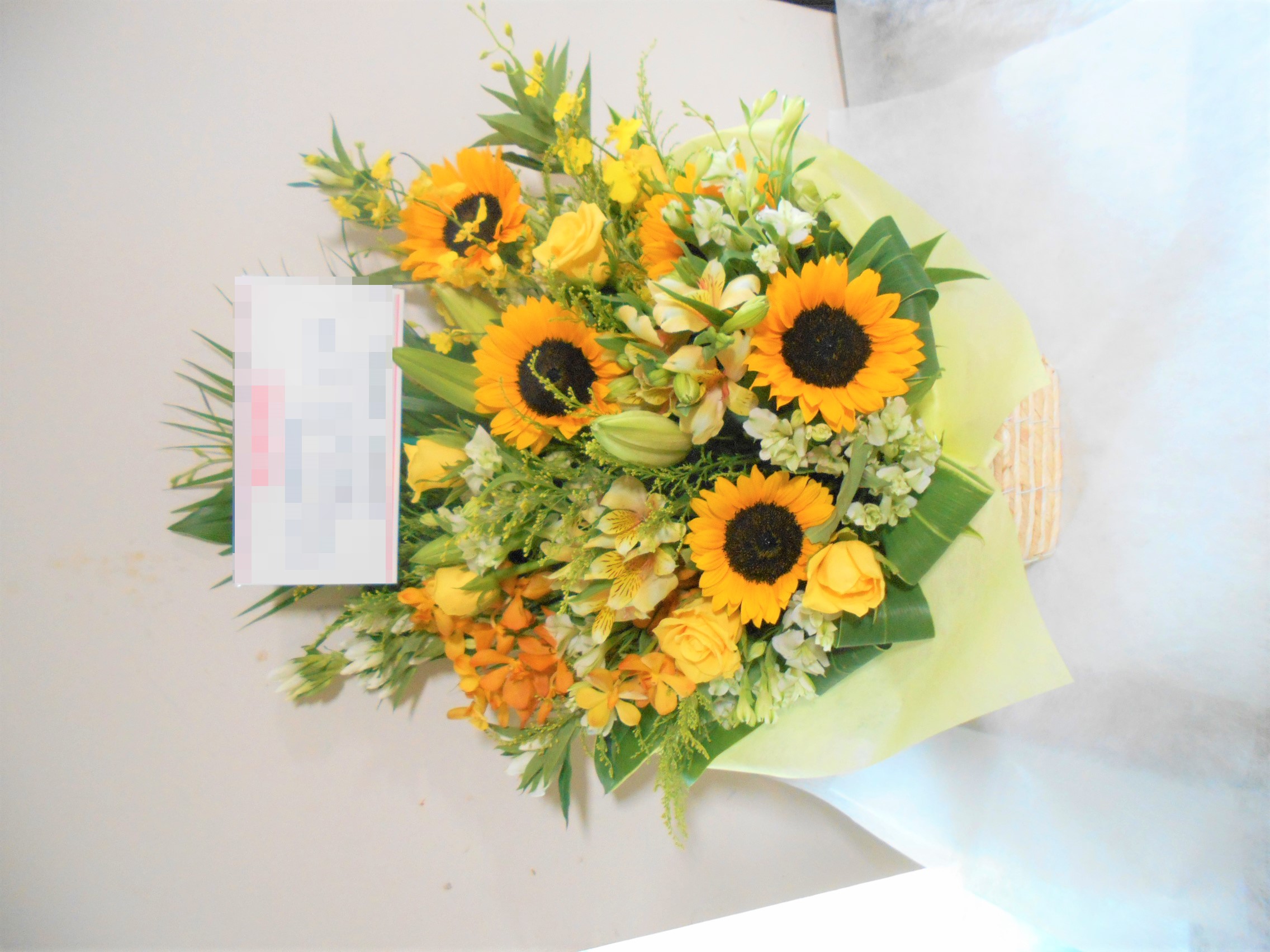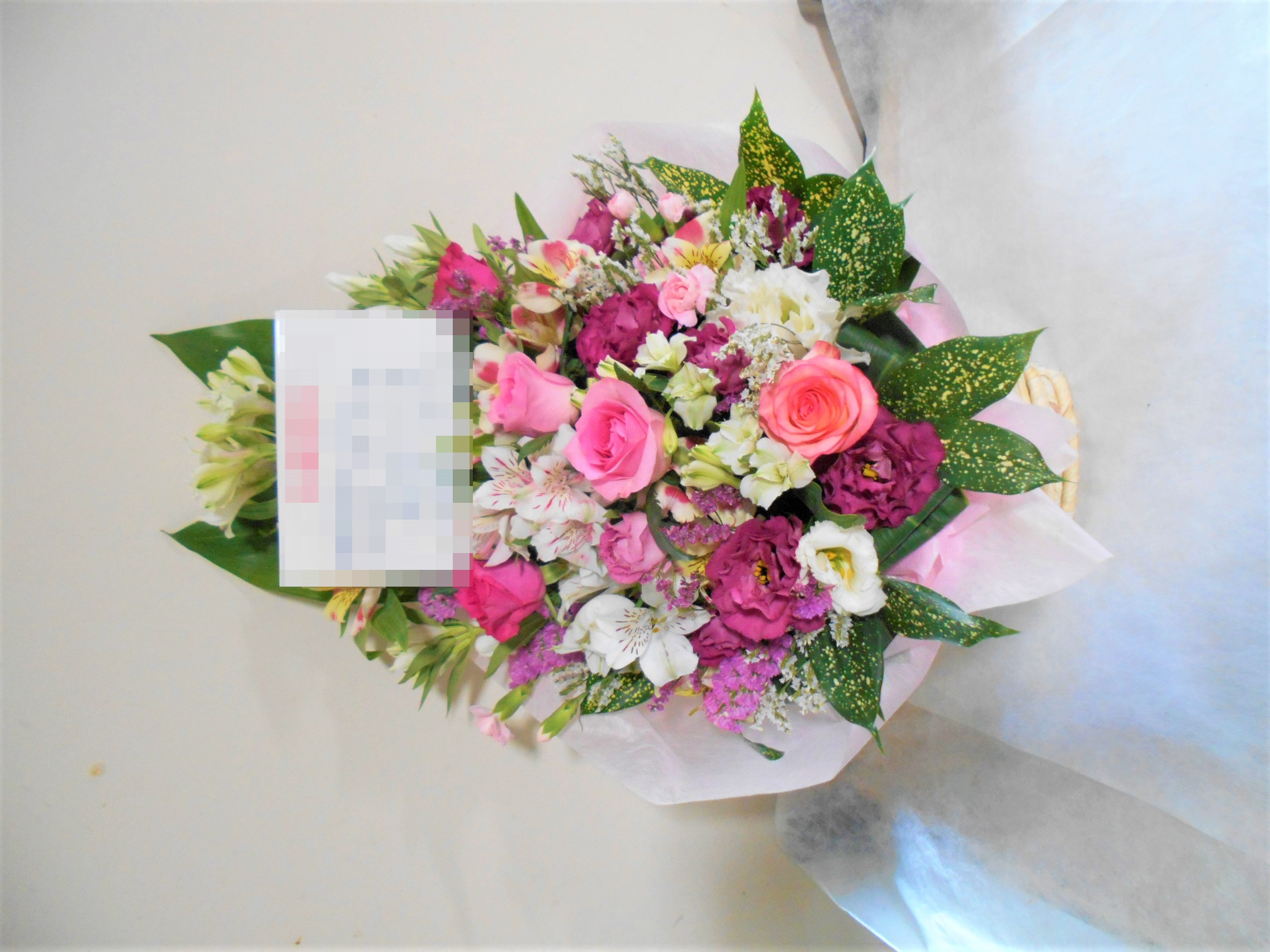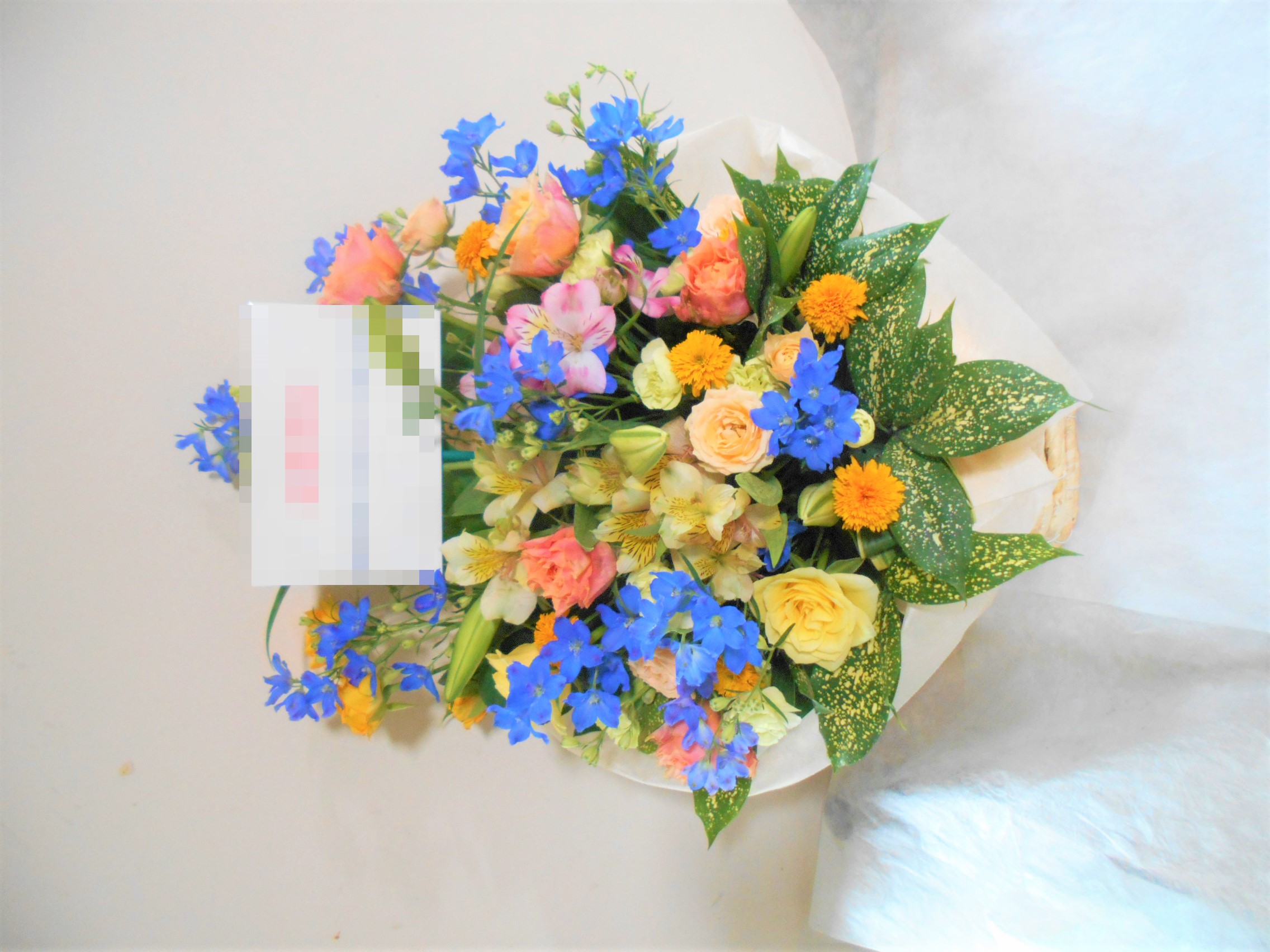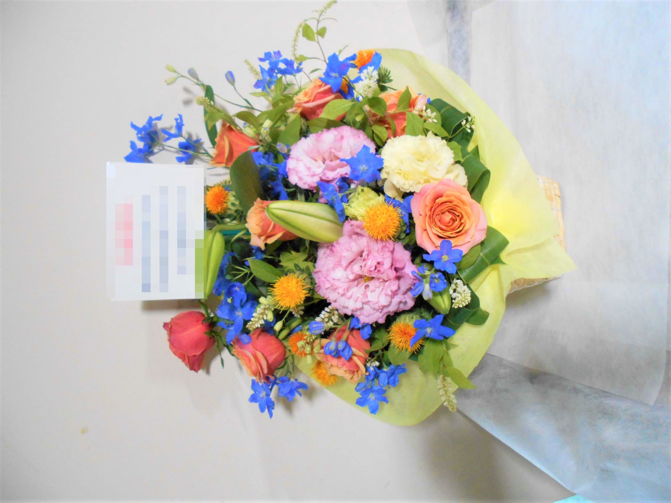 この写真は、実際にお届けさせていただいたアレンジメントです