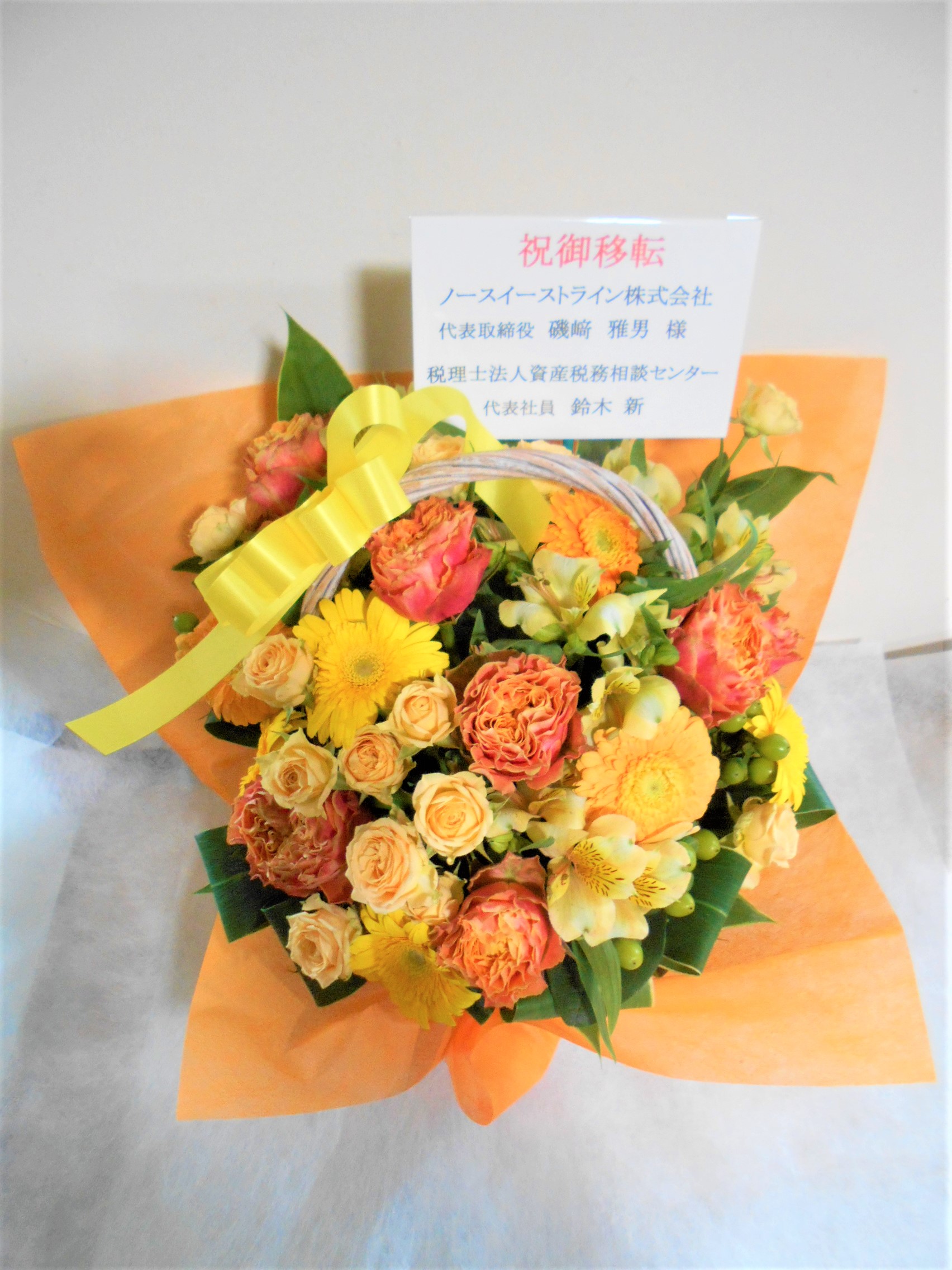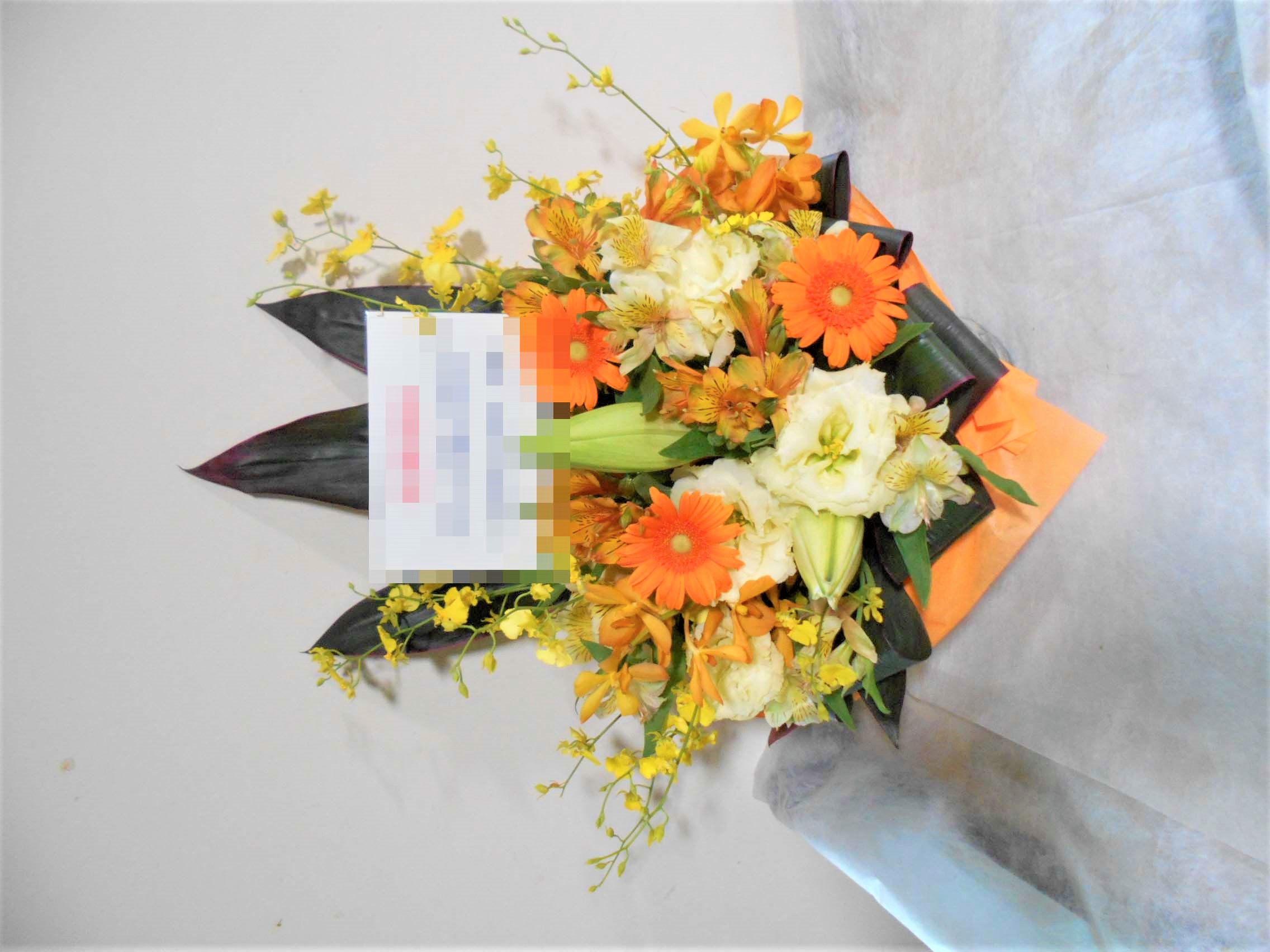 アレンジメントの実際にお届けした写真です。花秘書では発送前に写真をメールで送信致しますので安心して大切な顧客や取引様へのギフトにご利用頂けます。
