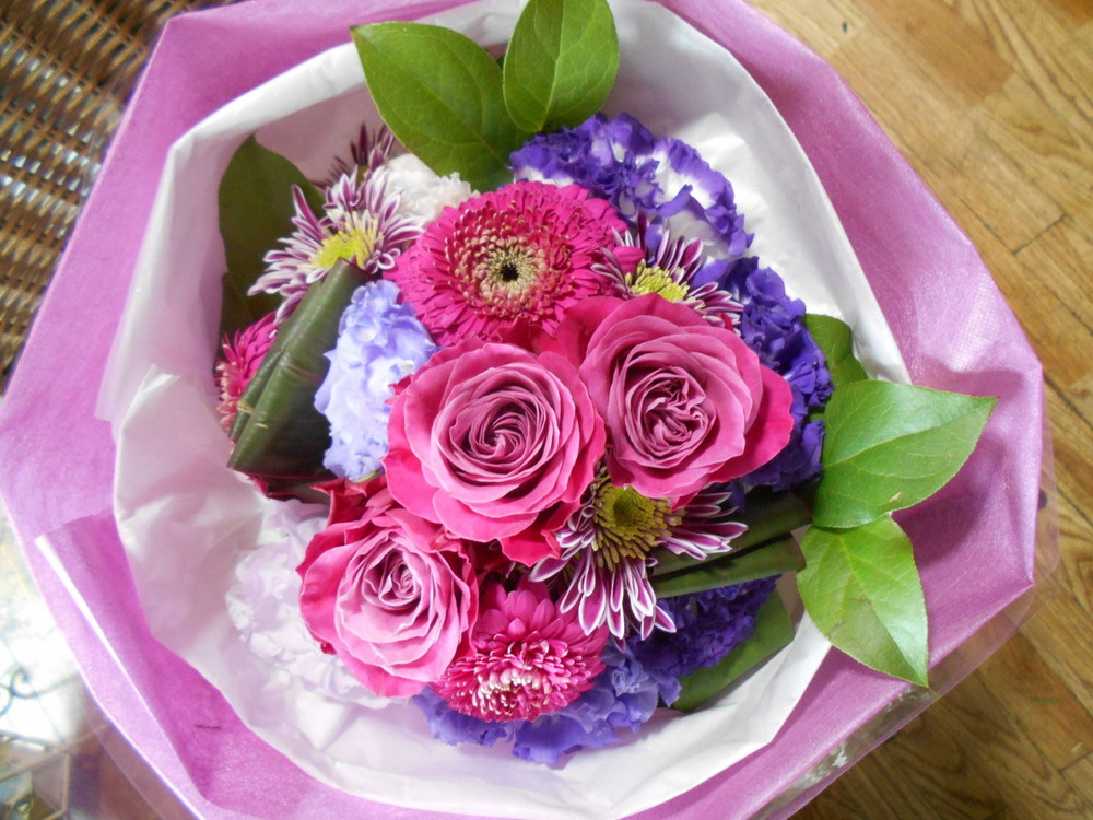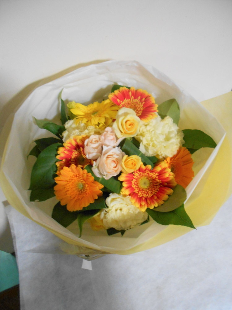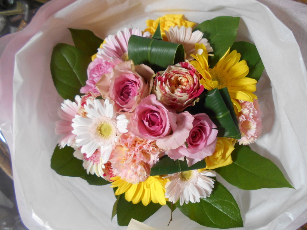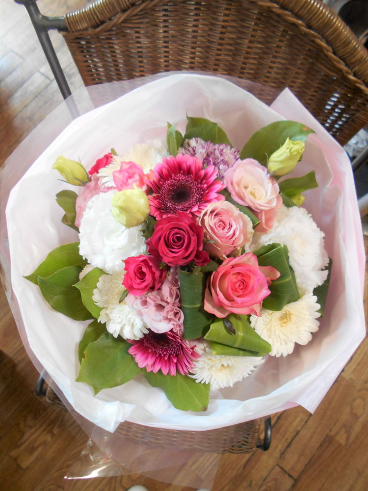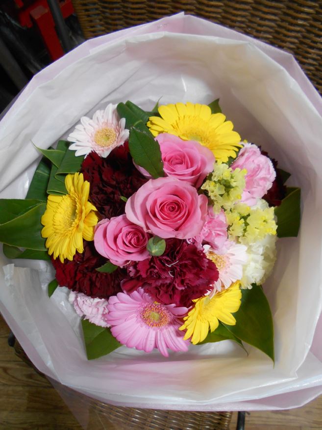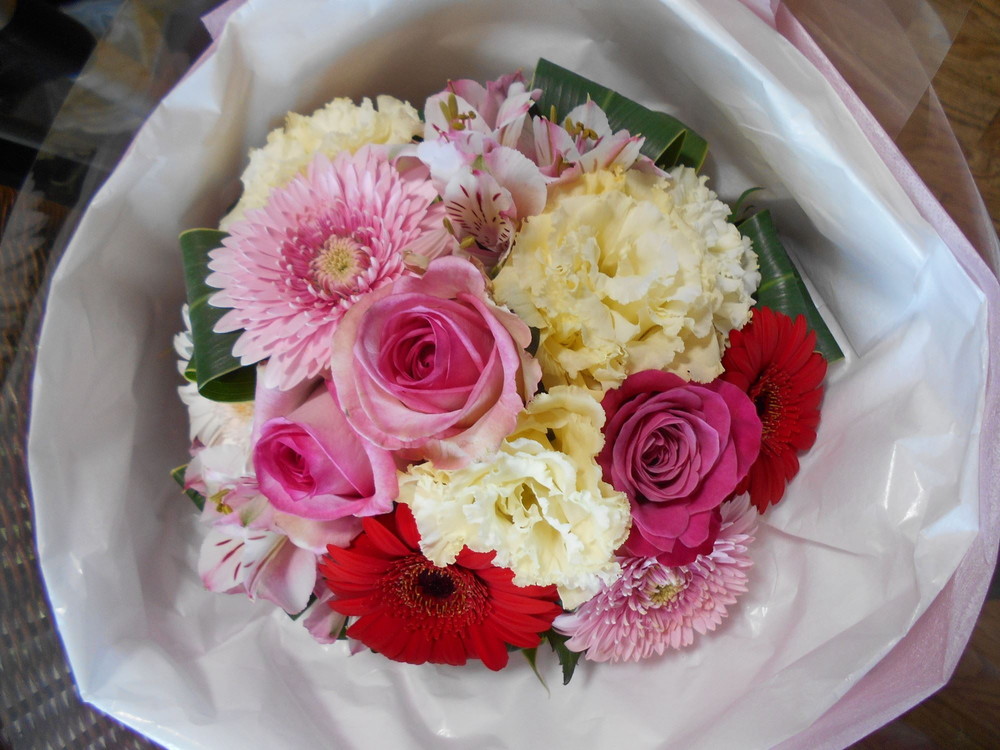 ピンク・レッド・クリームイエロー系のブーケ(花束)