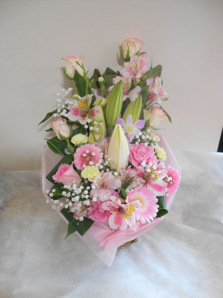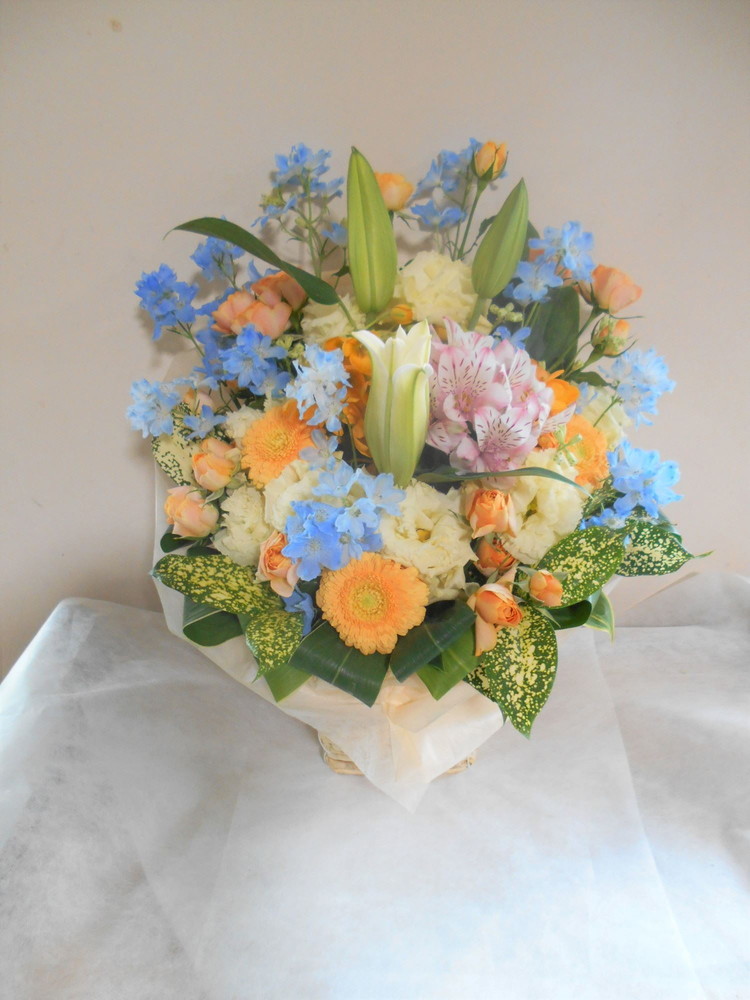 この写真は、実際にお届けさせていただいたアレンジメントです