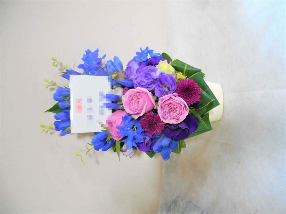 この写真は、実際にお届けさせていただいたアレンジメントです