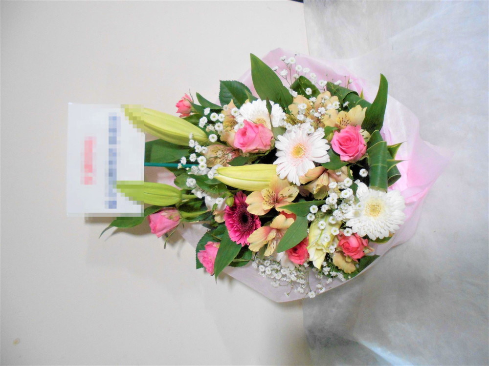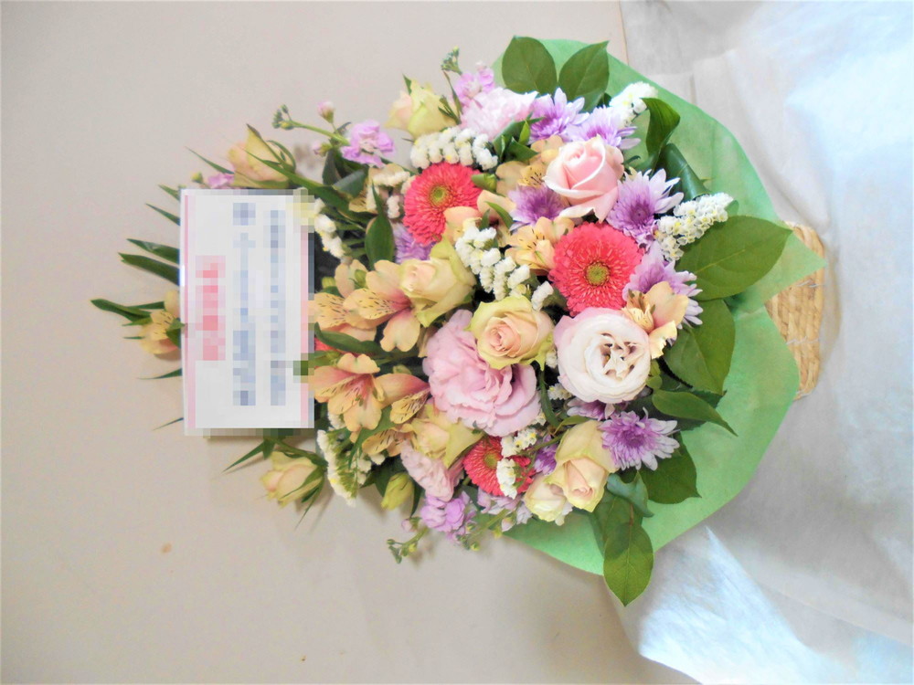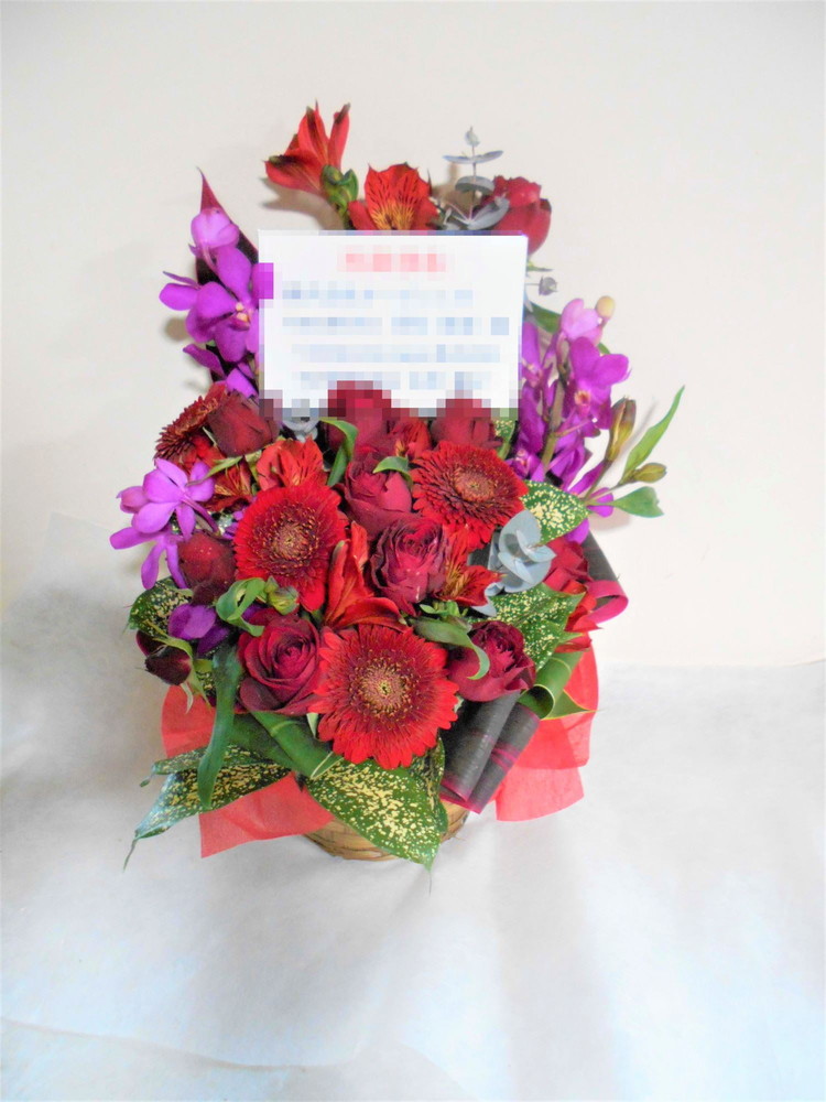 アレンジメントの実際にお届けした写真です。花秘書では発送前に写真をメールで送信致しますので安心して大切な顧客や取引様へのギフトにご利用頂けます。