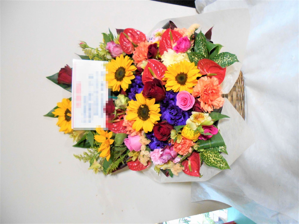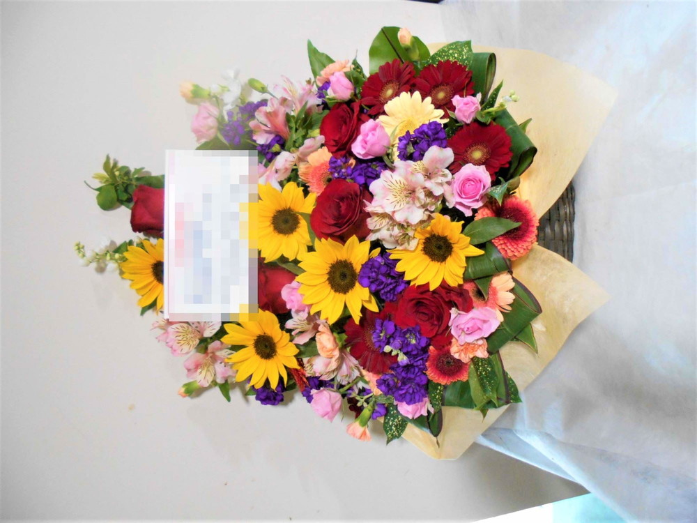 この写真は、実際にお届けさせていただいたアレンジメントです