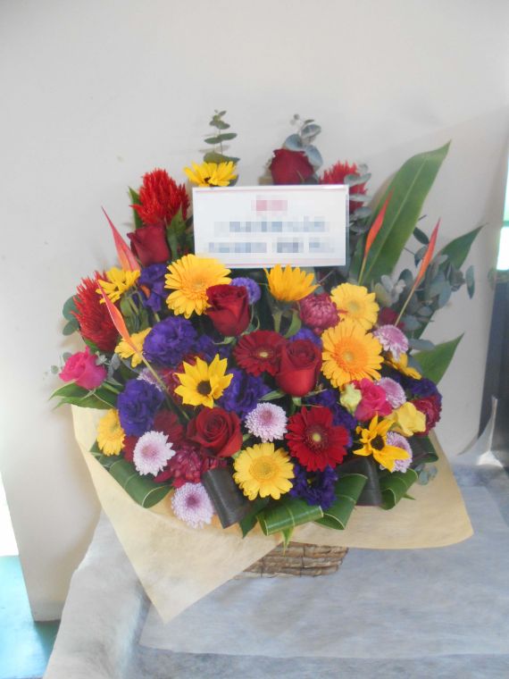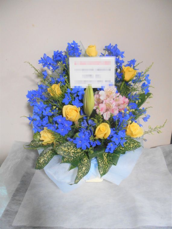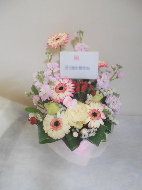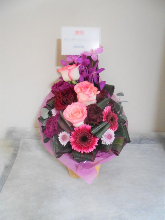 この写真は、実際にお届けさせていただいたアレンジメントです