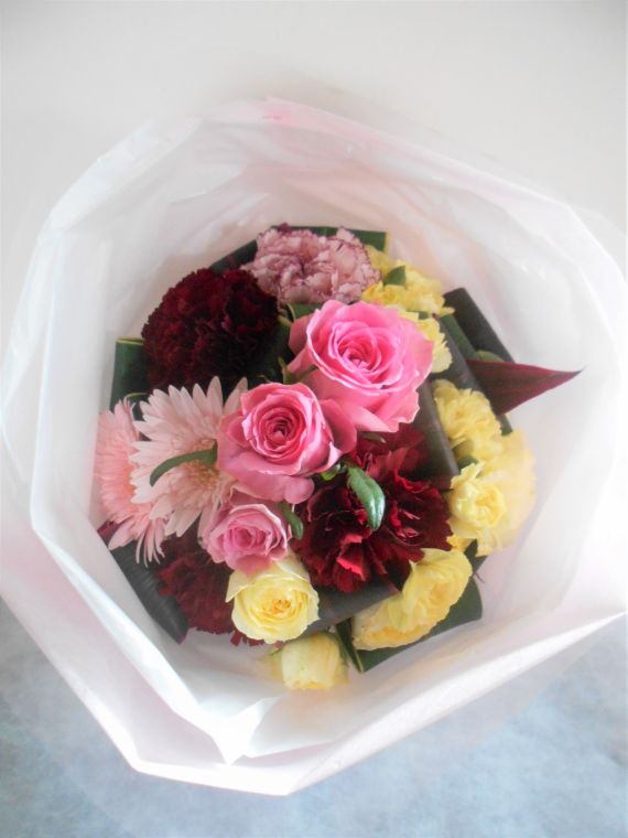 ピンク・レッド・クリームイエロー系のブーケ(花束)
