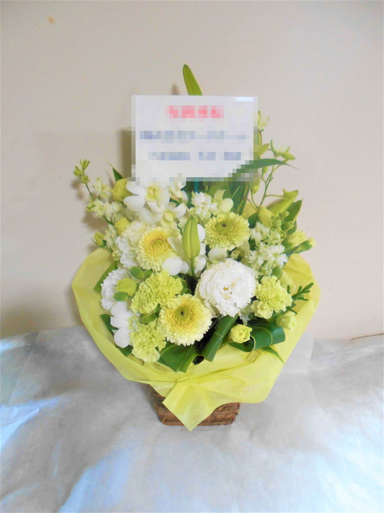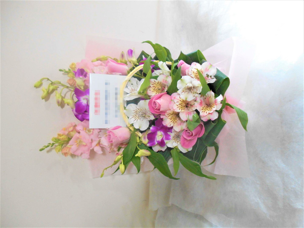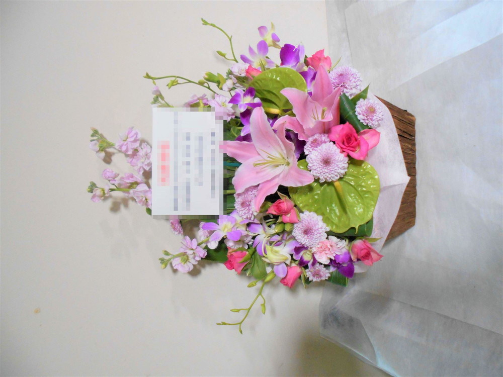 アレンジメントの実際にお届けした写真です。花秘書では発送前に写真をメールで送信致しますので安心して大切な顧客や取引様へのギフトにご利用頂けます。