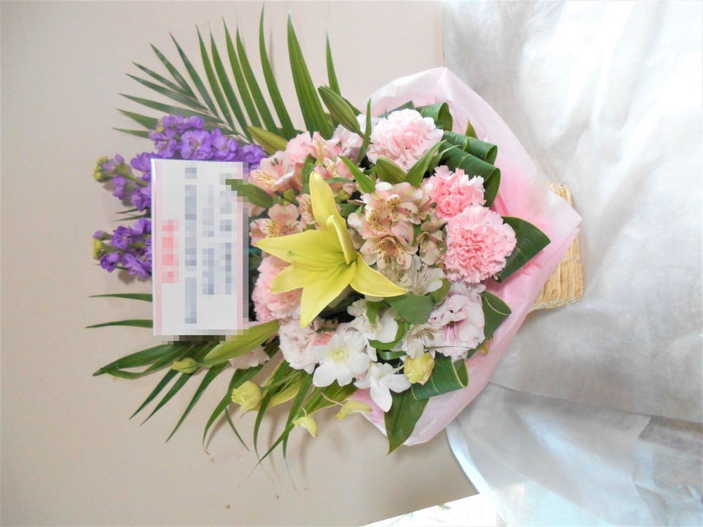 この写真は、実際にお届けさせていただいたアレンジメントです