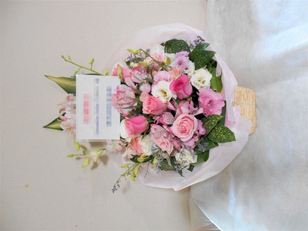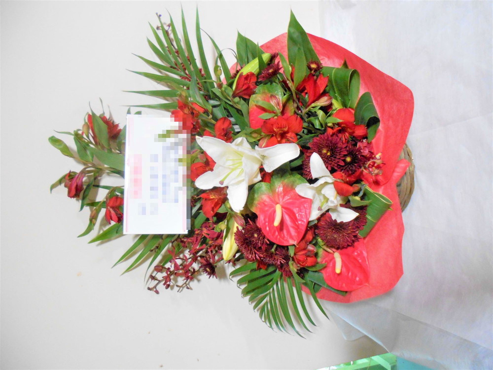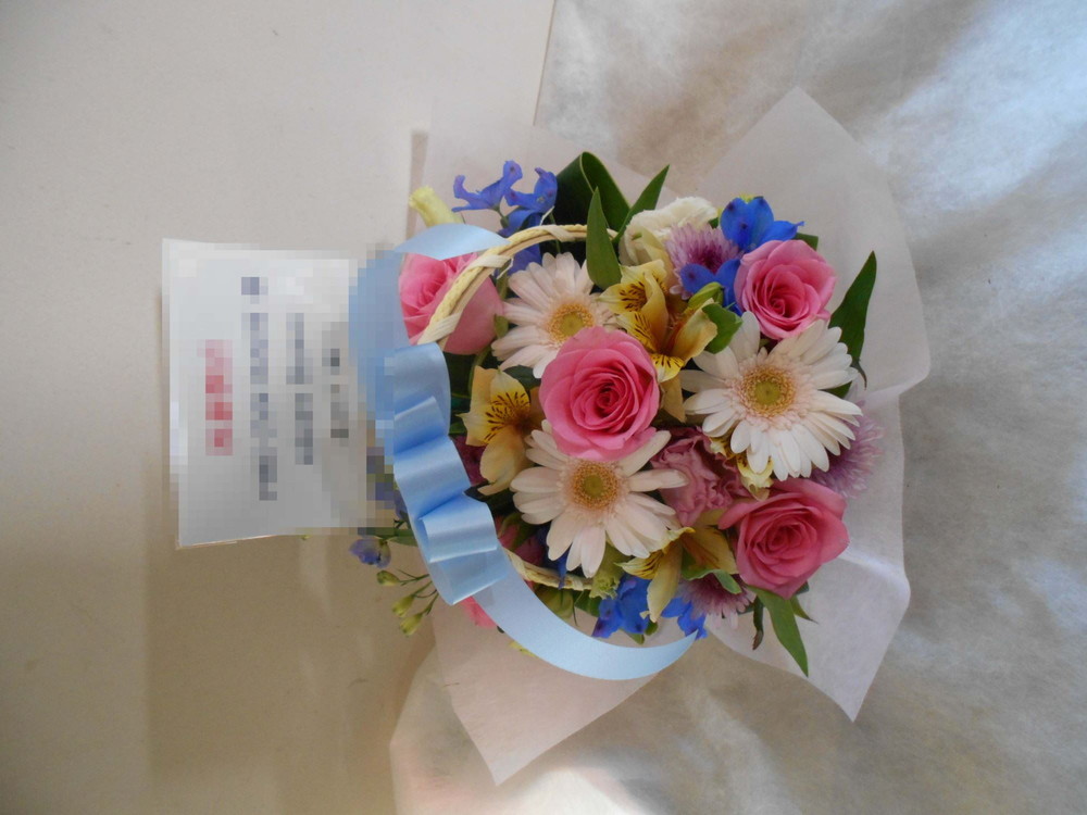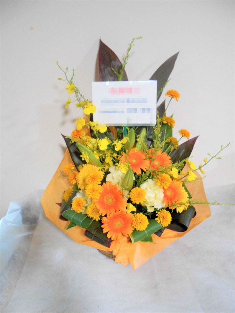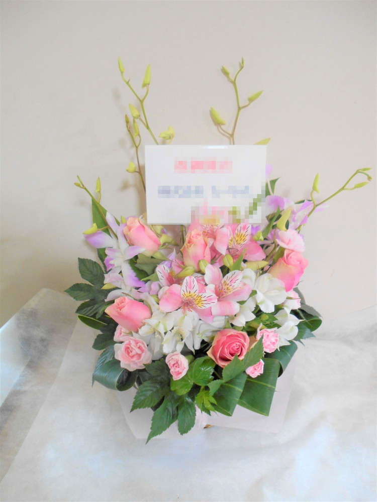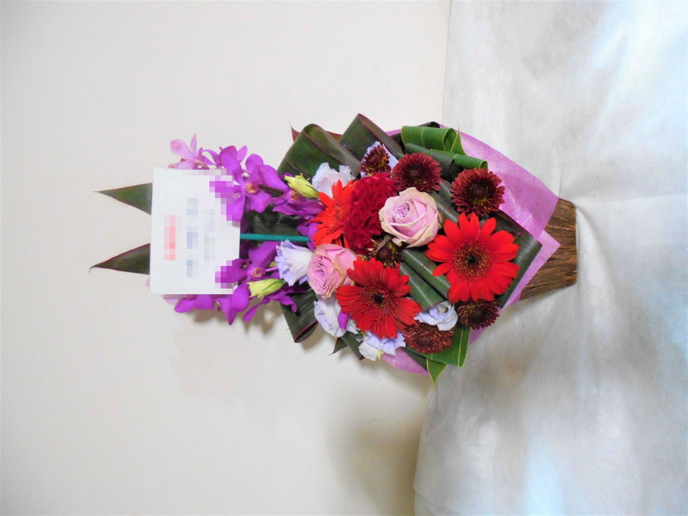 アレンジメントの実際にお届けした写真です。花秘書では発送前に写真をメールで送信致しますので安心して大切な顧客や取引様へのギフトにご利用頂けます。