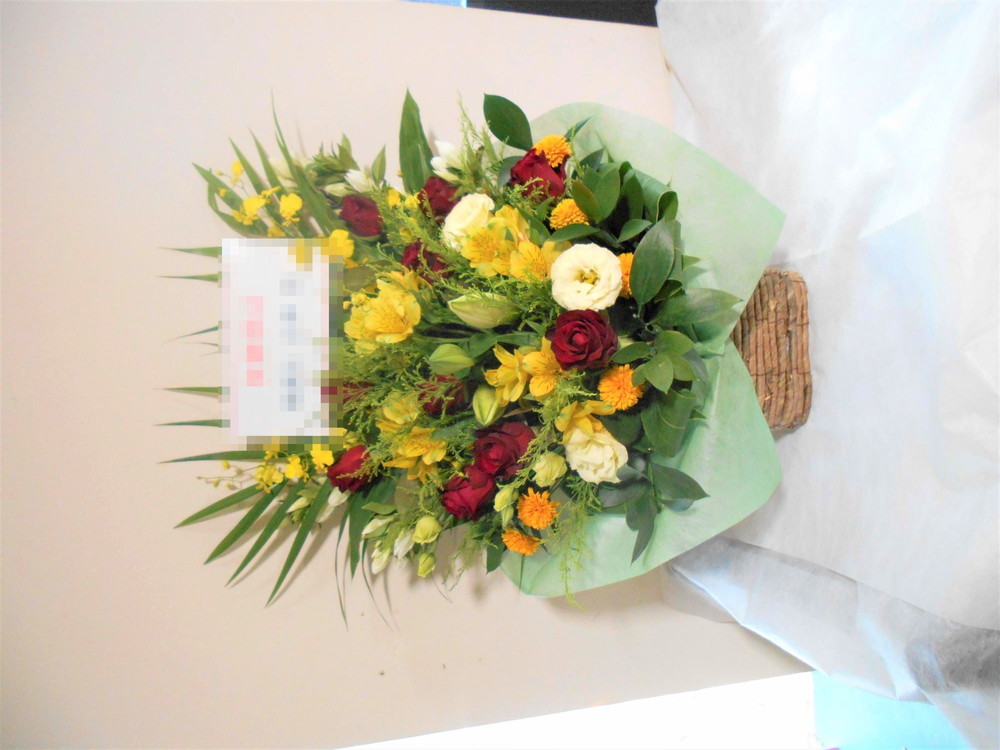 この写真は、実際にお届けさせていただいたアレンジメントです