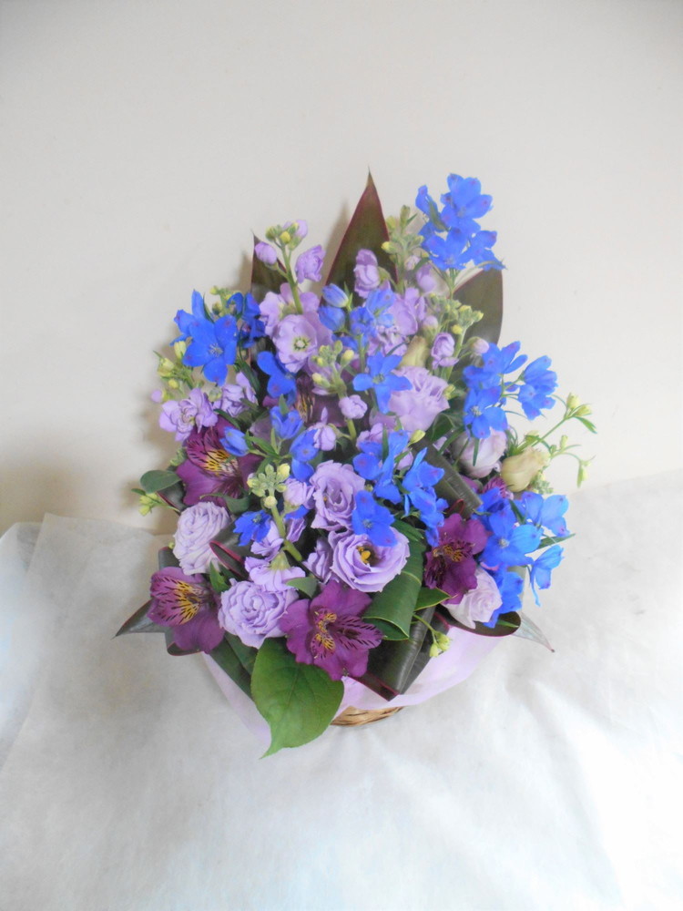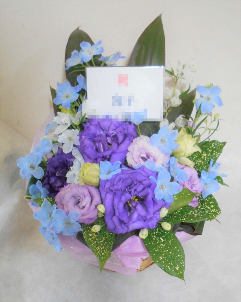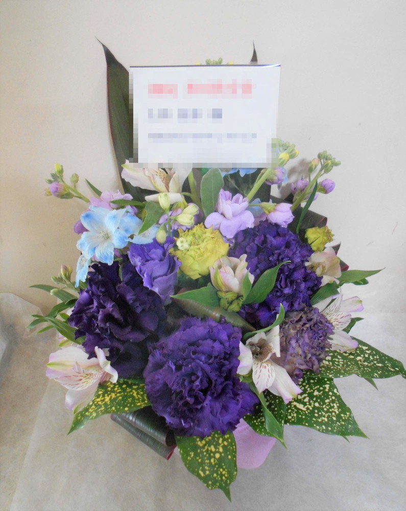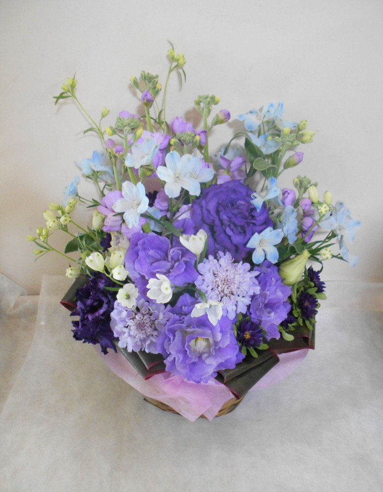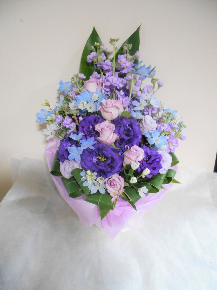 【青系】喜寿(77歳)のお祝い紫色のお花メインのアレンジメント5000