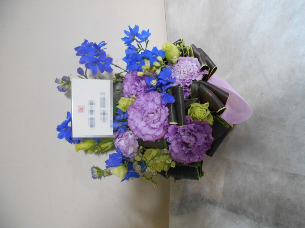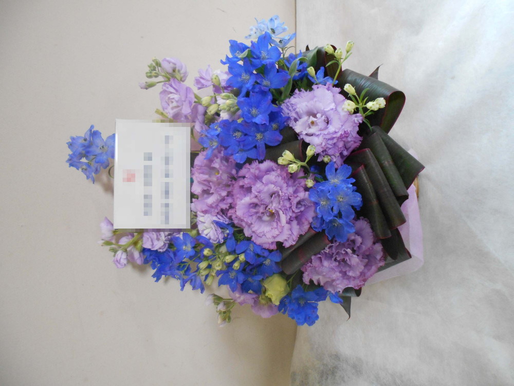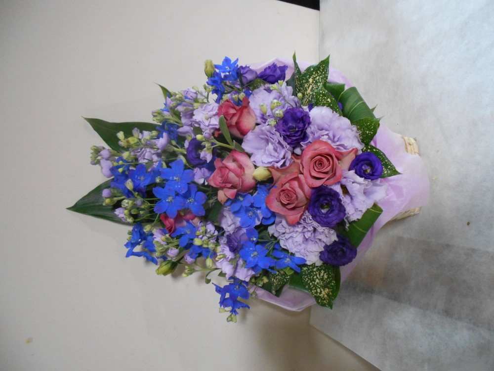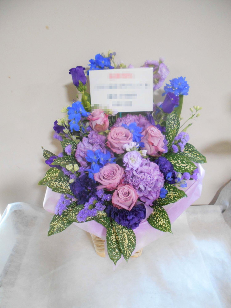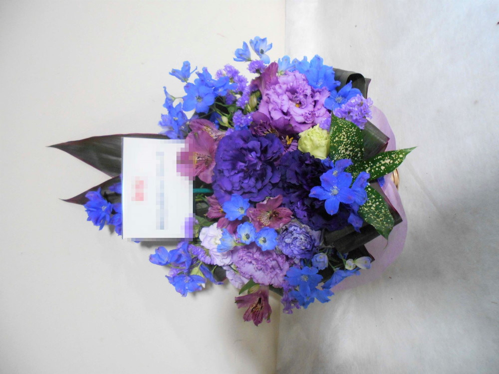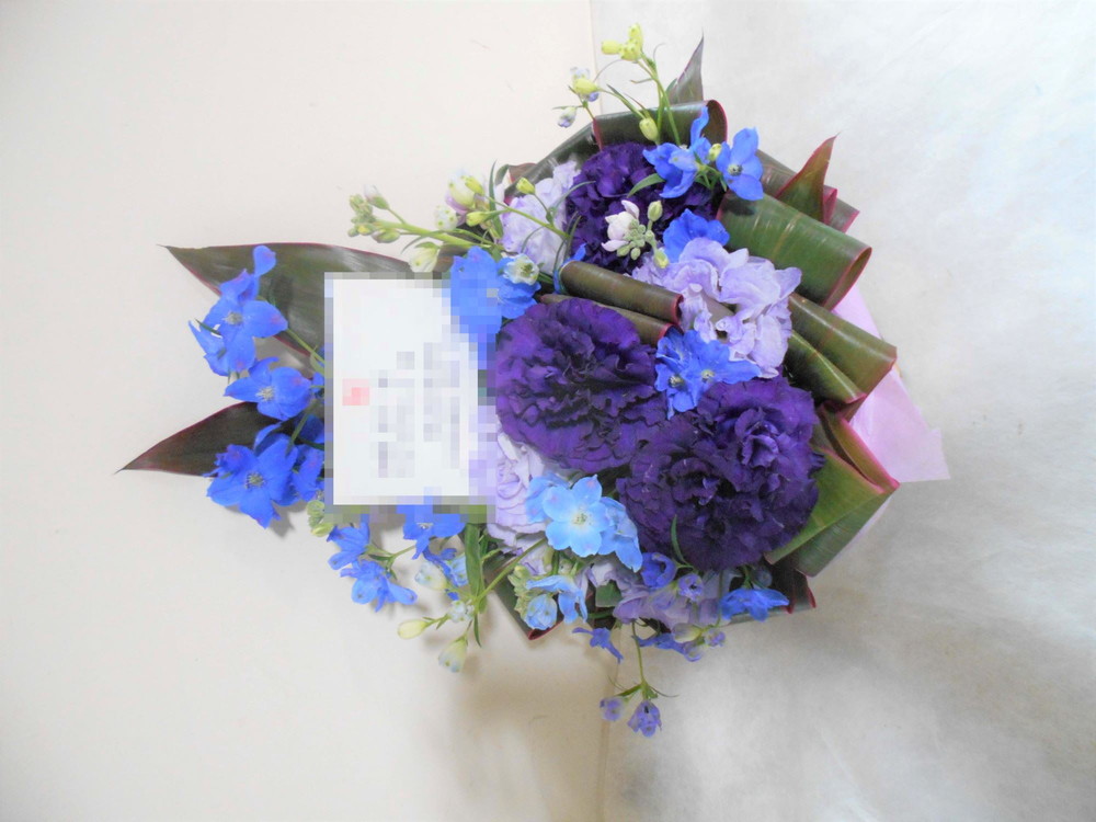 【青系】喜寿(77歳)のお祝い紫色のお花メインのアレンジメント5000