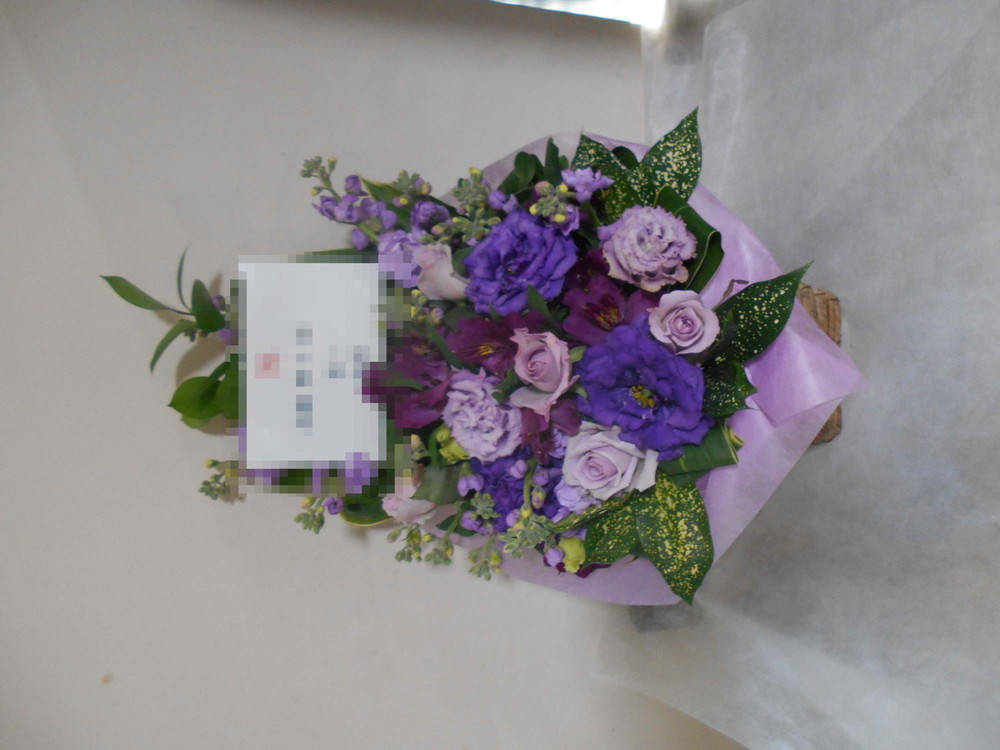 卒寿(90歳)のお祝い紫色のお花メインのアレンジメント5000
