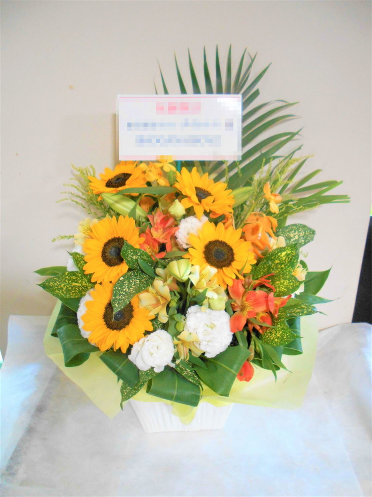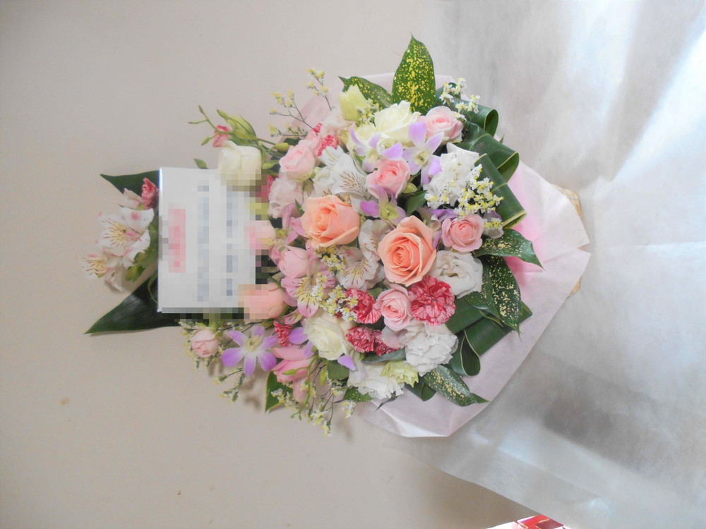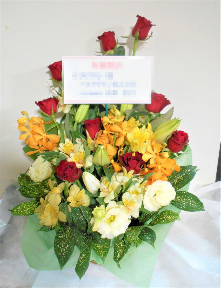 アレンジメントの実際にお届けした写真です。花秘書では発送前に写真をメールで送信致しますので安心して大切な顧客や取引様へのギフトにご利用頂けます。