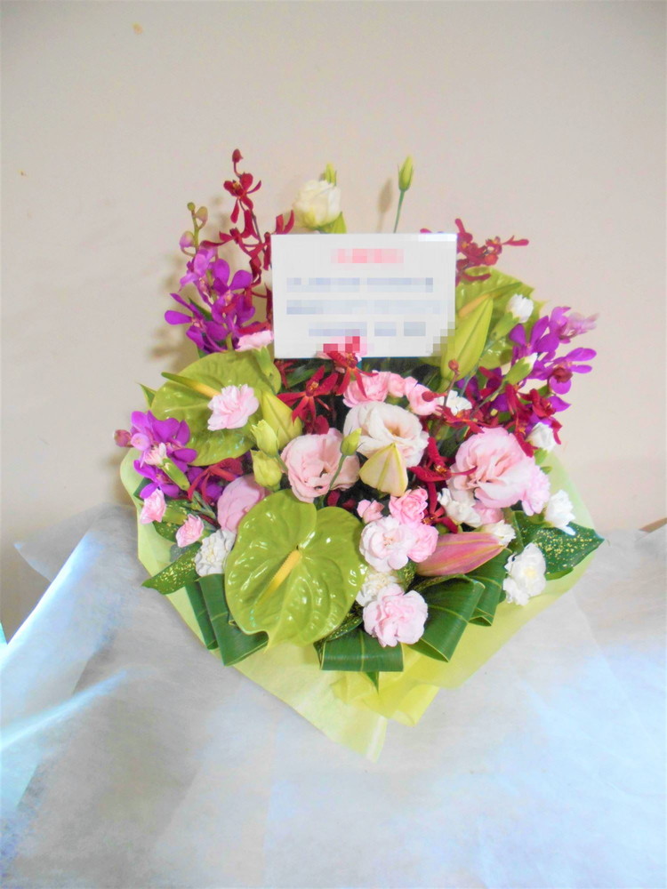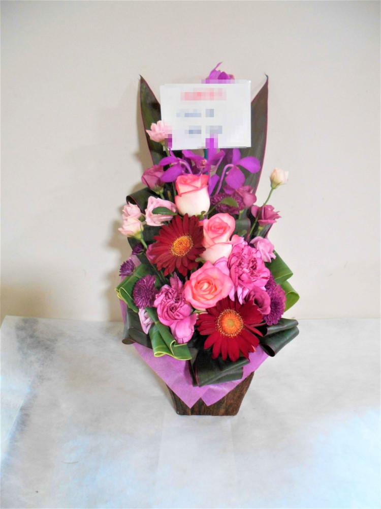 この写真は、実際にお届けさせていただいたアレンジメントです