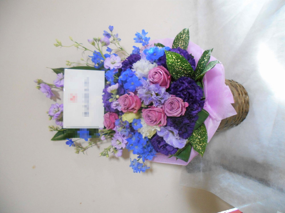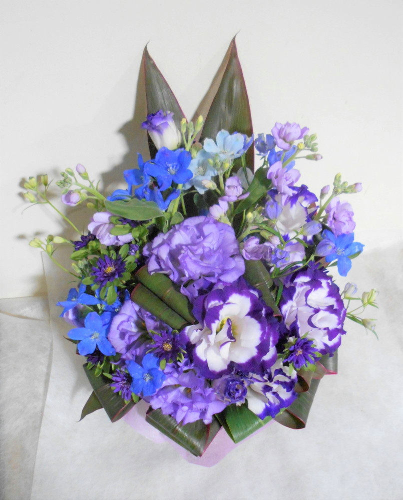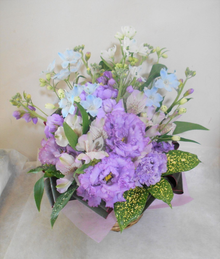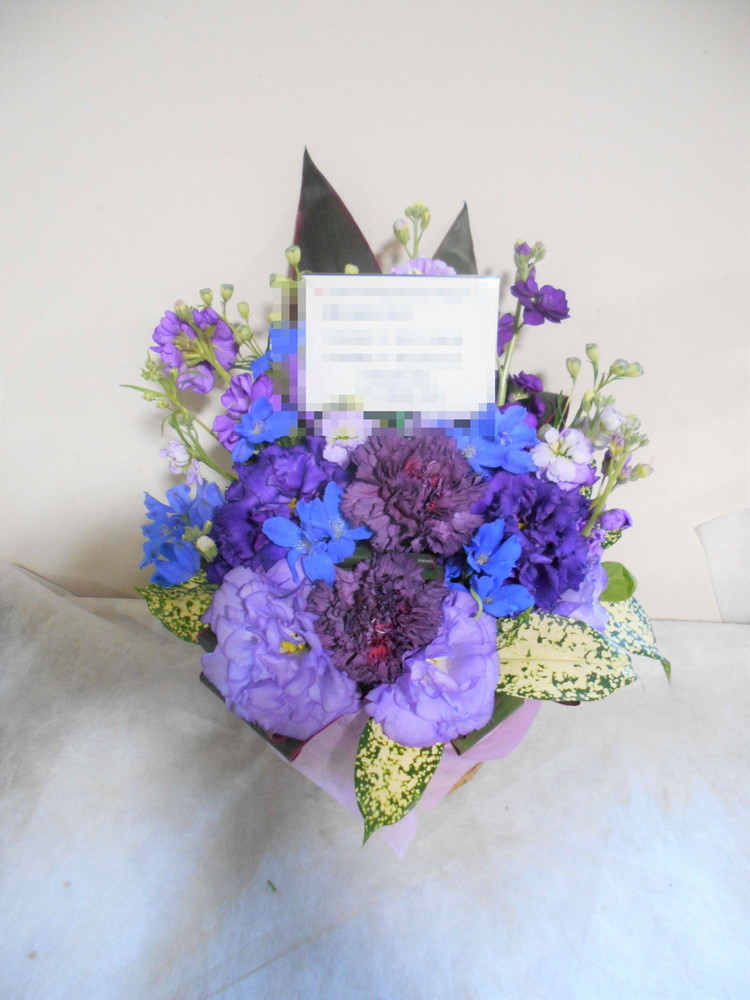 傘寿(80歳)のお祝い紫色のお花メインのアレンジメント5000