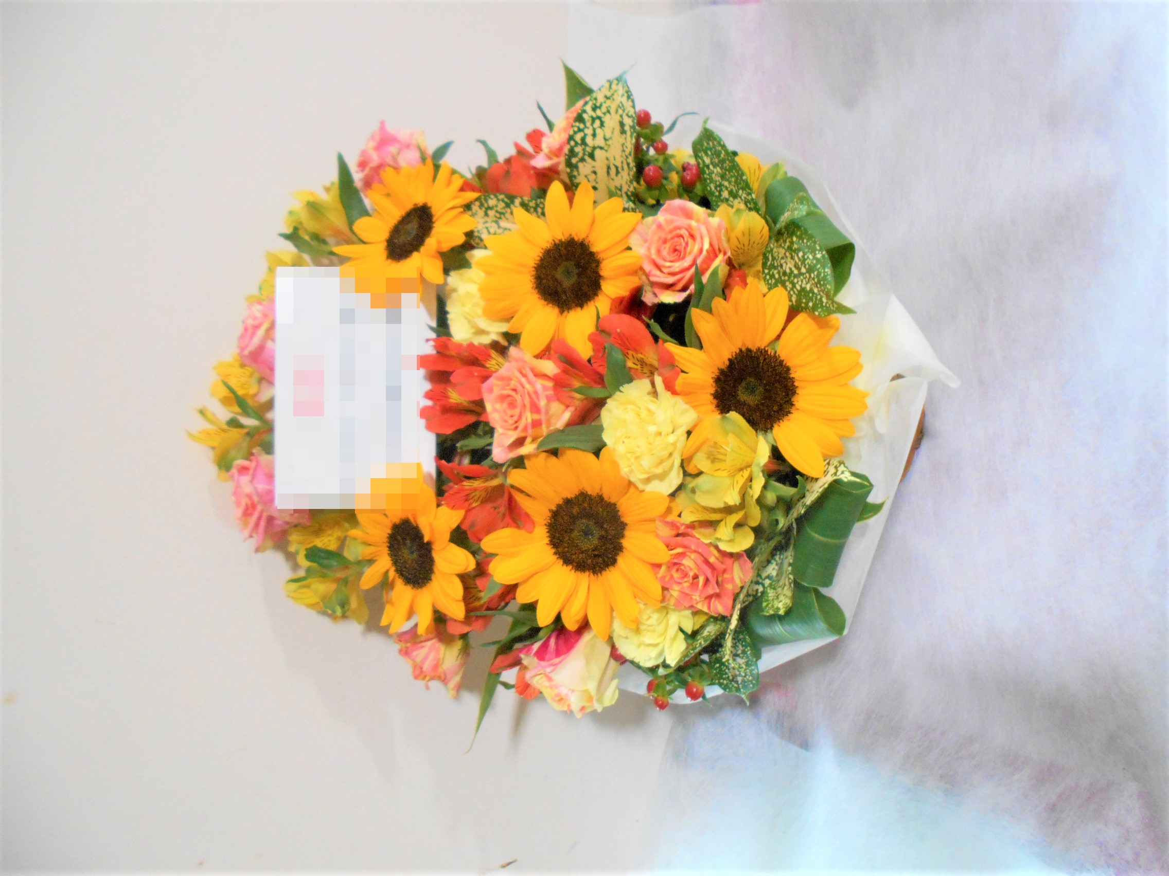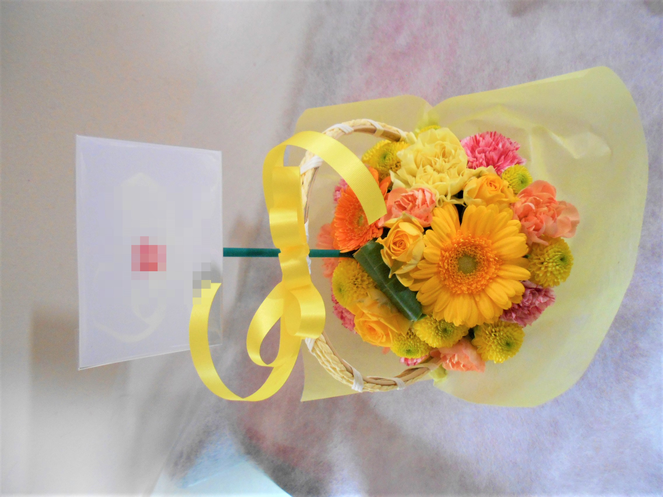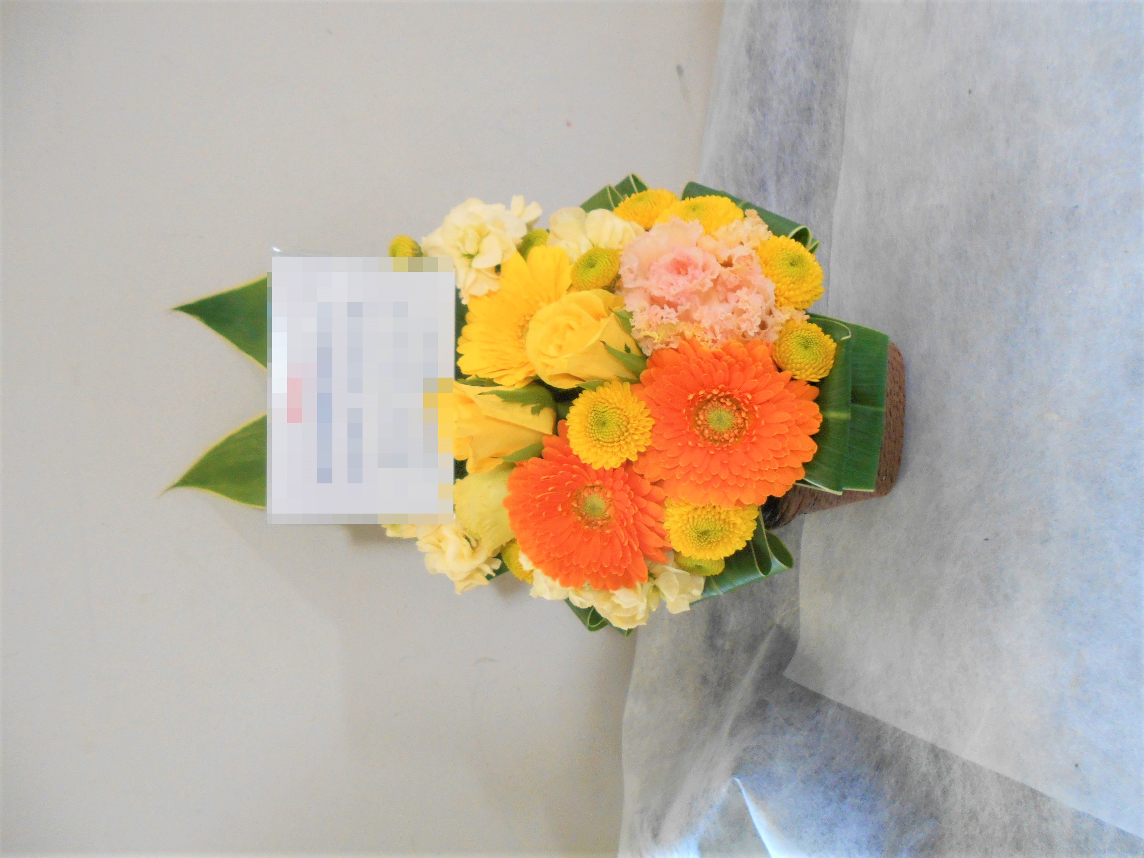 この写真は、実際にお届けさせていただいたアレンジメントです