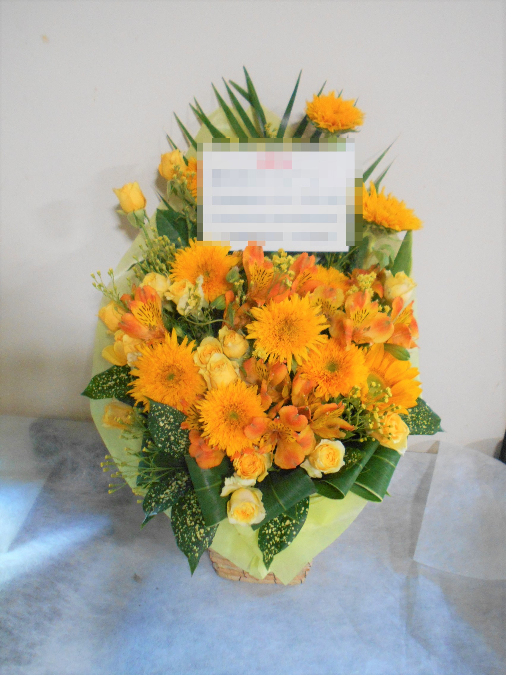 米寿(88歳)のお祝い黄色のお花メインのアレンジメント5000