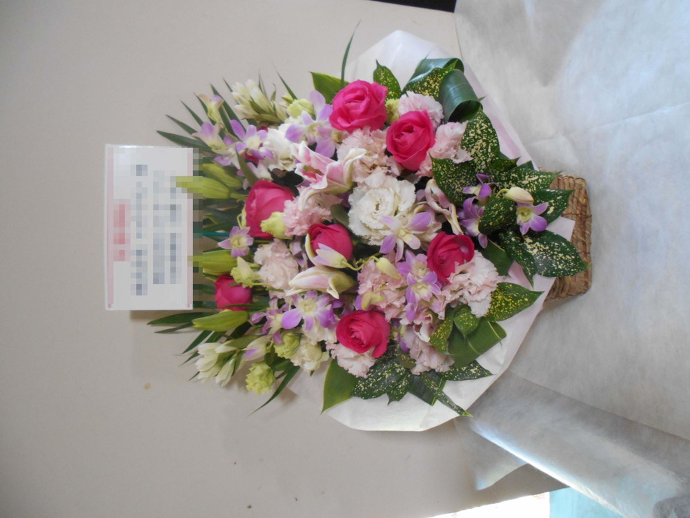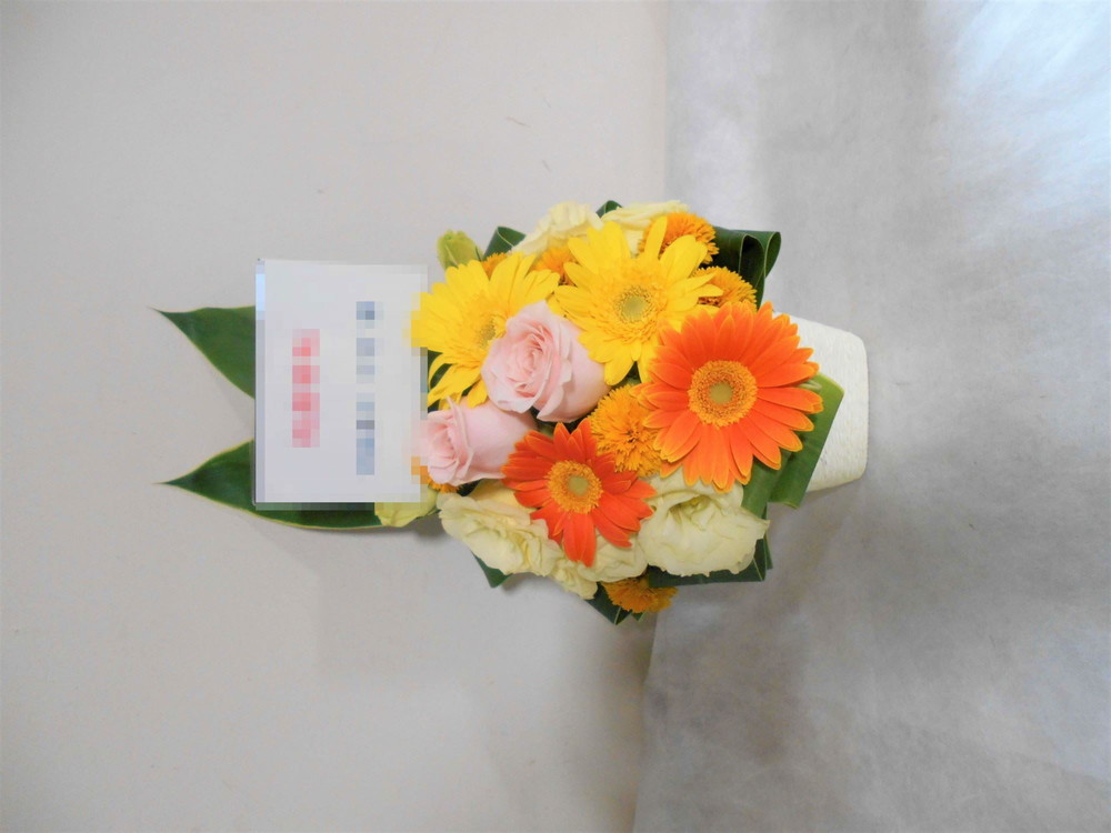 アレンジメントの実際にお届けした写真です。花秘書では発送前に写真をメールで送信致しますので安心して大切な顧客や取引様へのギフトにご利用頂けます。