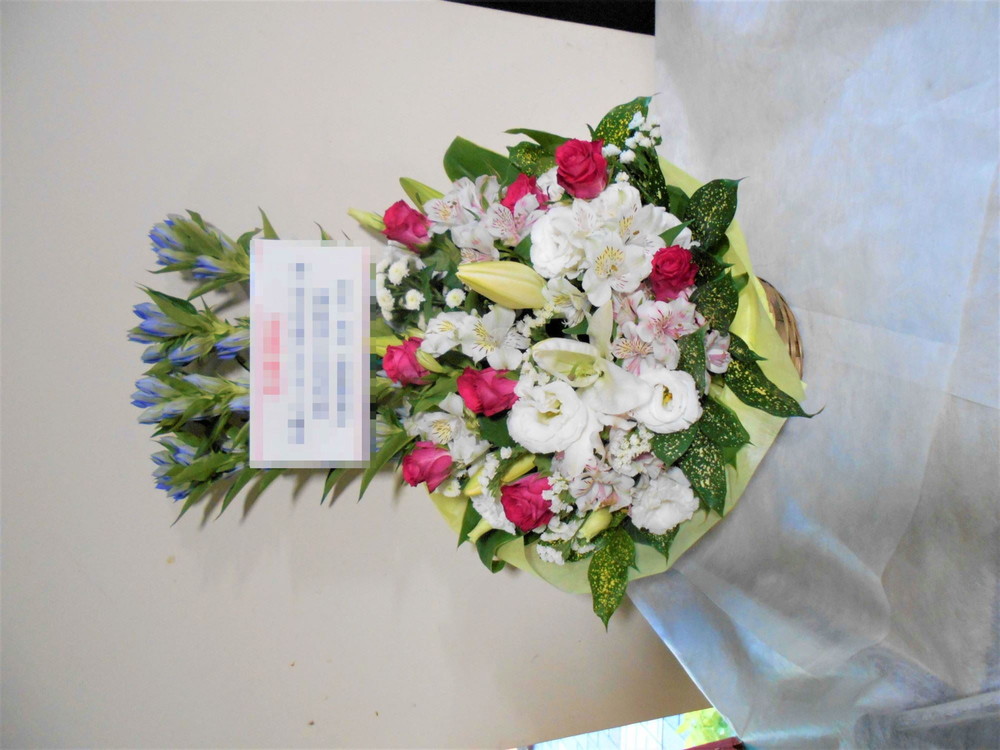 この写真は、実際にお届けさせていただいたアレンジメントです