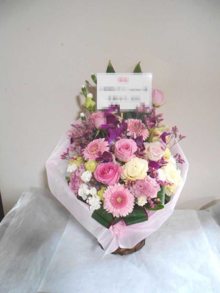 アレンジメントの実際にお届けした写真です。花秘書では発送前に写真をメールで送信致しますので安心して大切な顧客や取引様へのギフトにご利用頂けます。